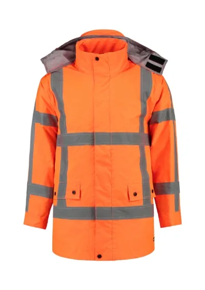 €125.64odjeća visoke vidljivosti, vodonepropusna, vjetrootporna i prozračna tkanina, retroreflektirajuće trake, odvojiva kapuljača, ventilacijski gumbi ispod pazuha, unutarnji džepovi na prsima, dvosmjerni patentni zatvarač, vodonepropusni patentni zatvarači, zalijepljeni šavovi, odvojiva termo podstava, certifikacija prema EN ISO 20471/A1 (klasa 3), EN 343 (klasa 3:1), Tricorp šifra: 403005