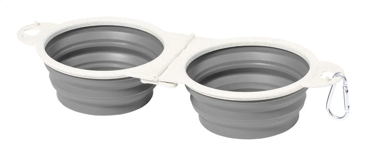Sklopiva zdjela za pse od plastike od pšenične slame i TPR-a s dva odjeljka i karabinerom