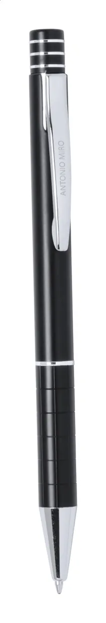 Elegantna aluminijska kemijska olovka s kromiranim vrhom i klipom. S plavim jumbo punjenjem. Proizvod marke Antonio Miro.