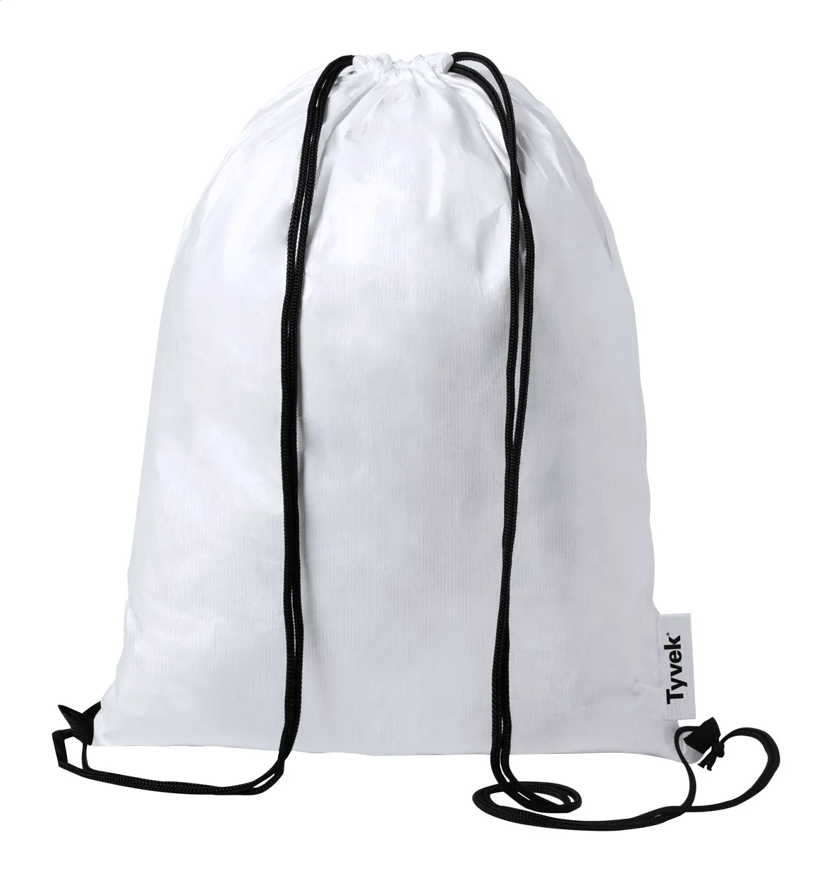 Vrećica s vezicom od Tyvek® materijala s kontrastnim crnim vezicama. Materijal Tyvek® je 100% reciklabilan.
