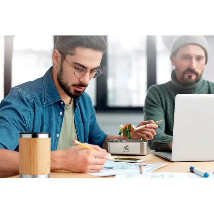 €5.69Posuda za hranu od nehrđajućeg čelika s poklopcem od bambusa i 2 pribora za jelo s pričvrstivom poliesterskom trakom zapremnina 600 ml bambus je prirodan materijal pa su moguće manje razlike u boji i veličini pojedinog proizvoda što može utjecati na konačni izgled ukrasa