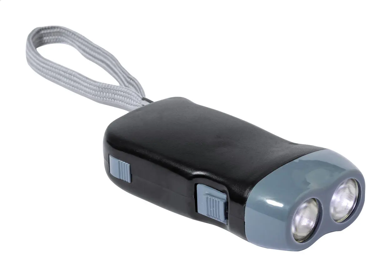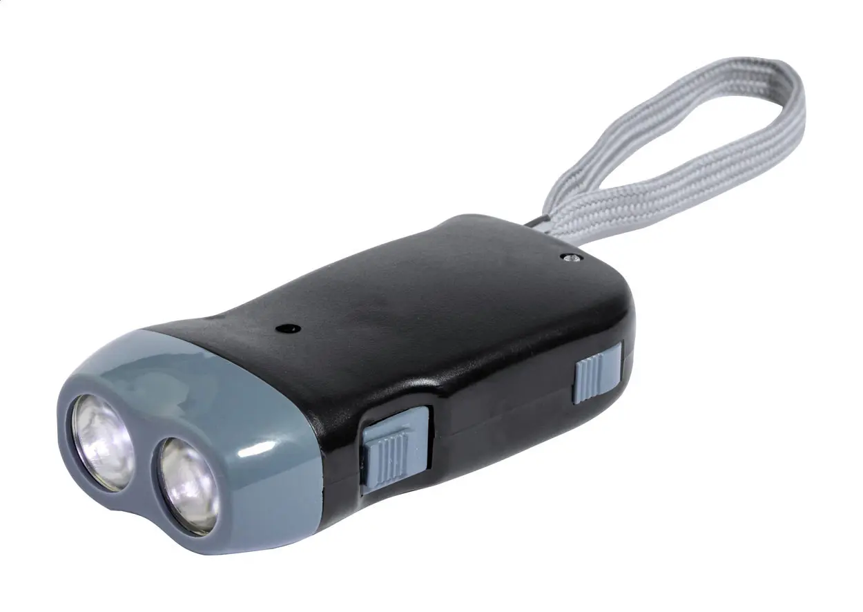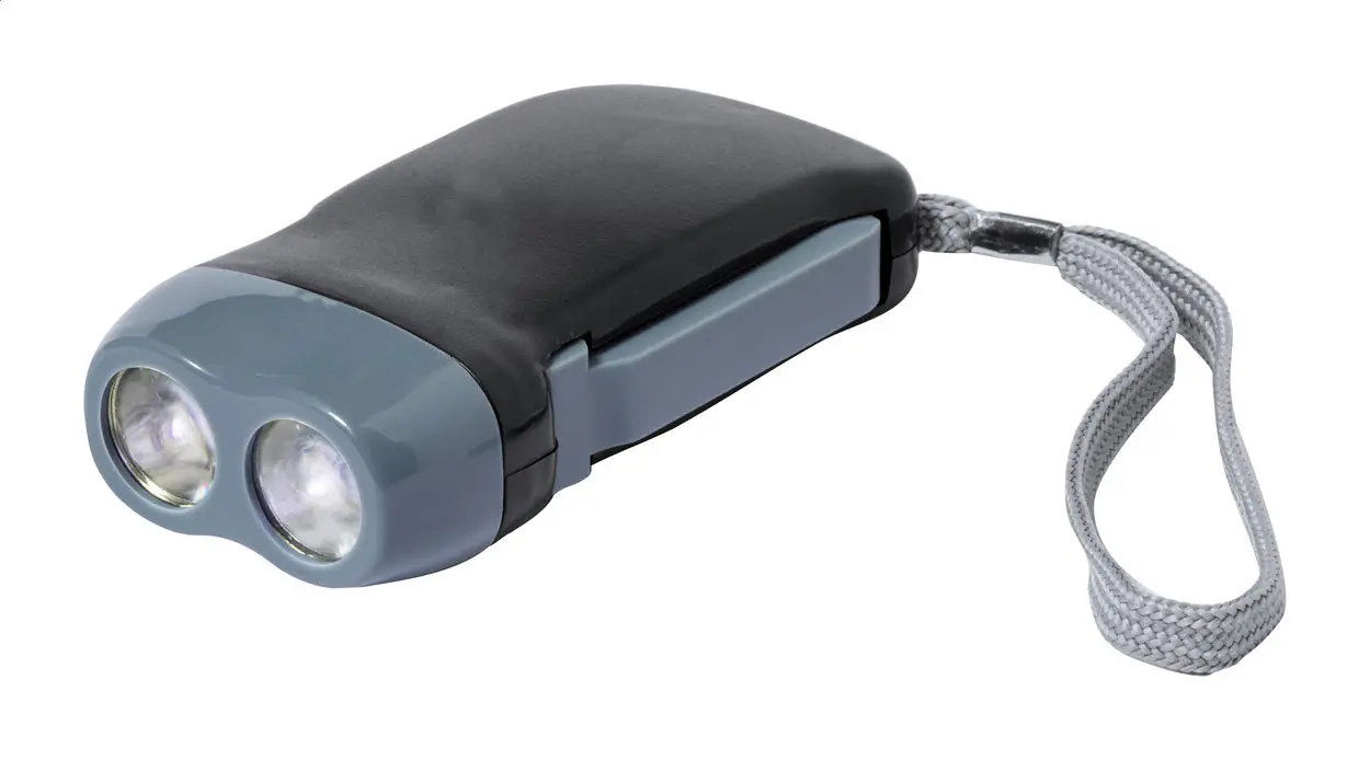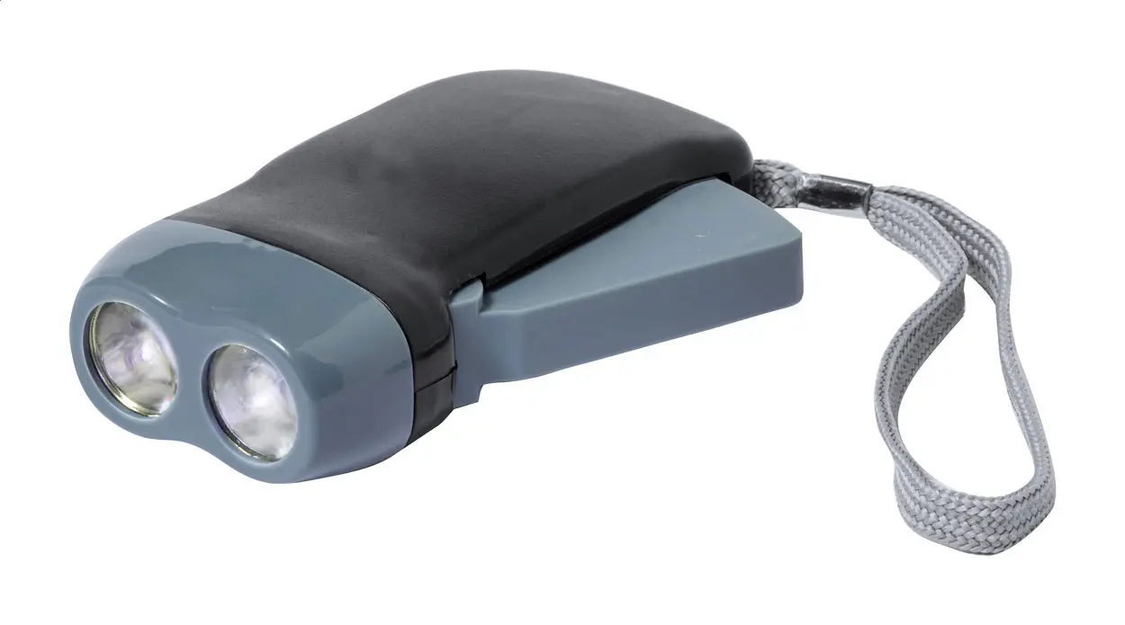 Svjetiljka s 2 LED diode i ručnim dinamo punjačem, u kućištu od ABS plastike s remenom za nošenje