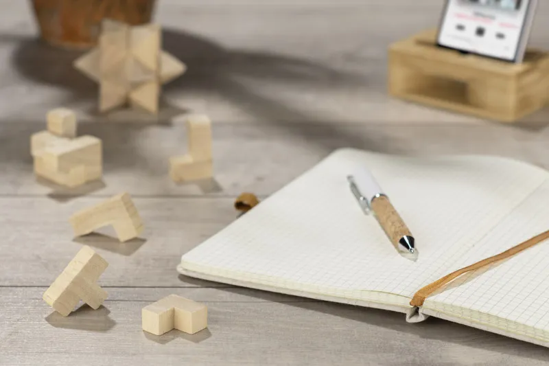 €10.34CALMO set sadrži bilježnicu s 96 listova kariranog papira A5 formata i kemijsku olovku s plavim punjenjem, obje s prirodnim elementima od pluta, pakirano u smeđoj papirnatoj kutiji, dimenzije proizvoda: 147 x 210 x 15 mm (bilježnica), 136 x ⌀ 11 mm (olovka), 195 x 220 x 25 mm (kutija)
