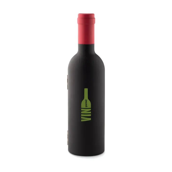 €5.85Set za vino predstavljen u kutiji oblika boce. Sadrži čep za vino, vadičep i prsten protiv prolijevanja. Zatvaranje na magnet.