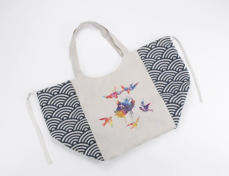 BOHO torba za kupovinu od pamuka i poliestera s unutarnjim džepom i vezicama za zatvaranje