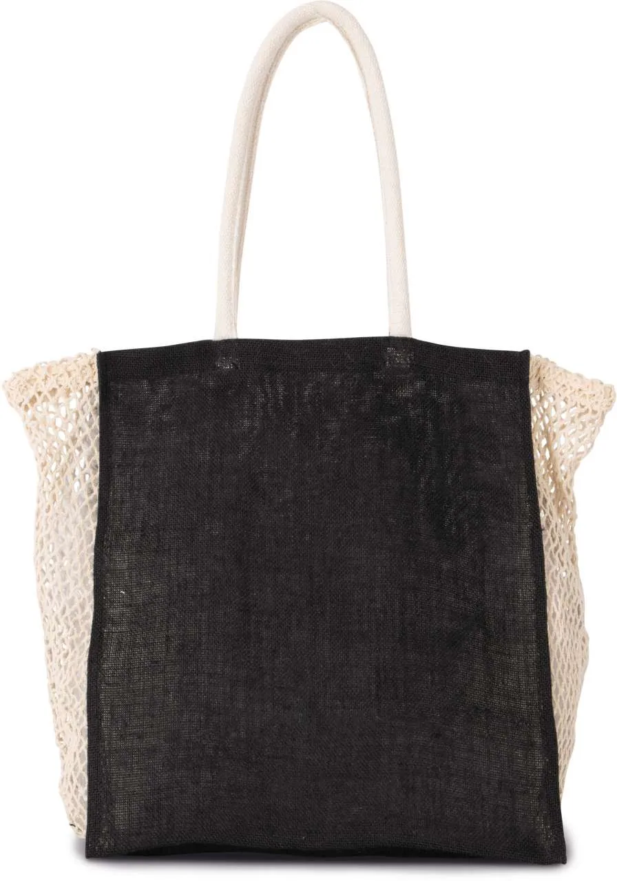 100% juta / 100% pamuk, jutena torba za kupovinu s pamučnim mrežastim proširenjem, pamučne ručke u prirodnoj boji, prirodna boja: STANDARD 100 by OEKO-TEX® N° CQ 1164/1. IFTH certifikat
