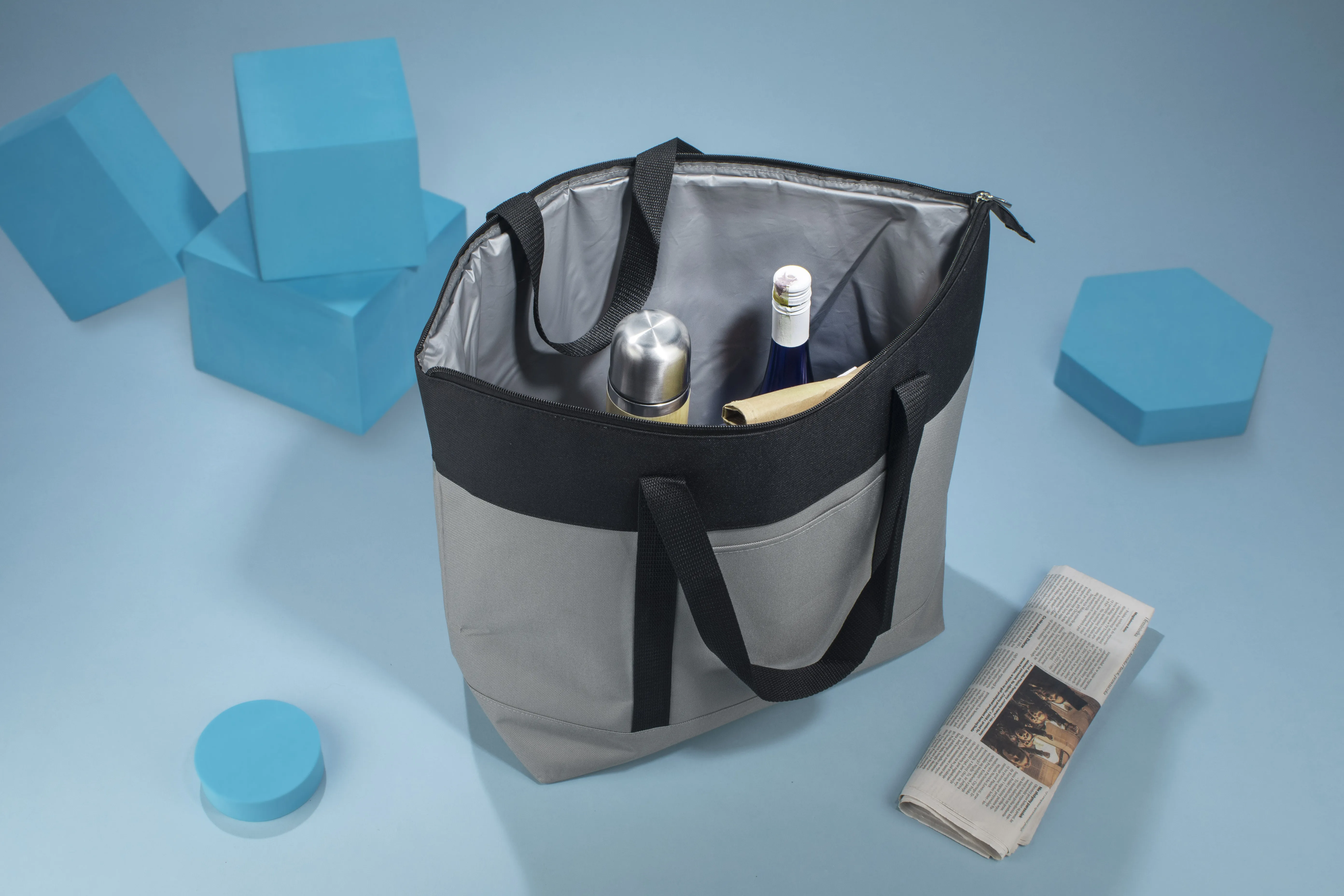 €16.89Prostrana jednokomorna torba za kupovinu s termoizolacijskim slojem koji omogućuje održavanje temperature proizvoda duže vremena. Izrađena od poliestera, ima vanjski džep. Primijenjena izolacija od EPE pjene prekrivena PEVA premazom.