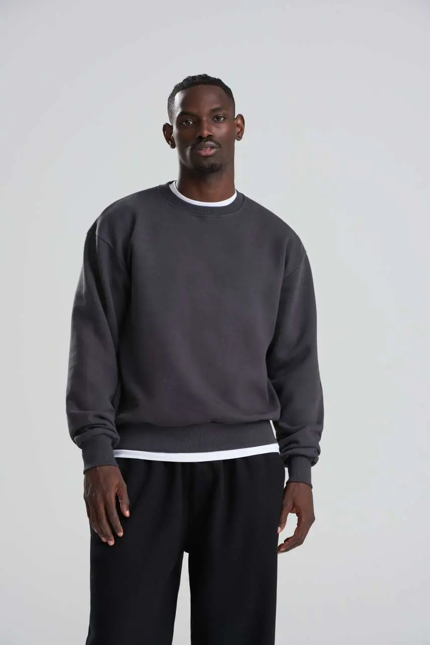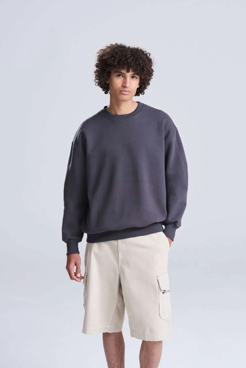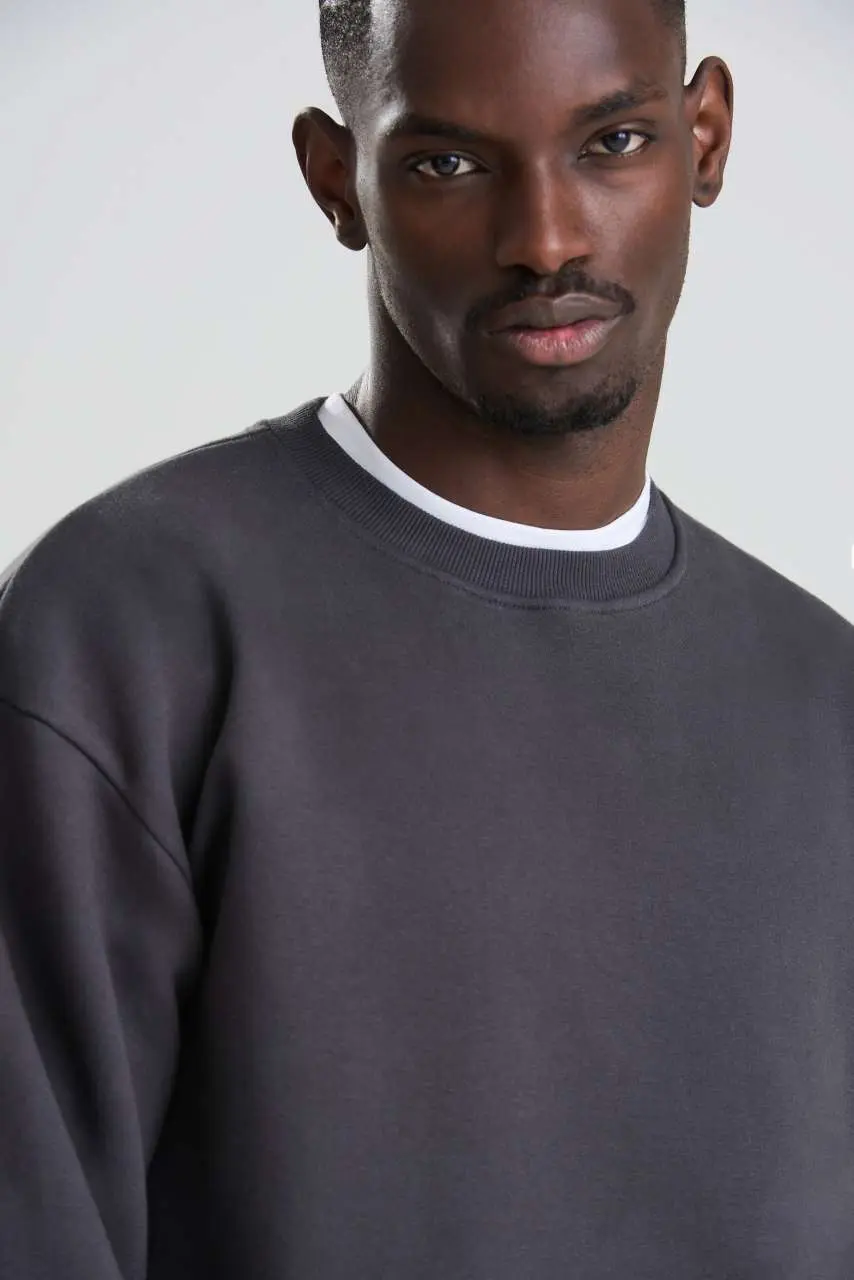 70% Ringspun pamuk/30% reciklirani poliester Boja Heather Grey: 60% Ringspun pamuk/40% reciklirani poliester Teška tkanina Izrez oko vrata Rebrasti ovratnik, manšete i rub Ušiveni rukavi Unutrašnjost od flisa Odvojiva etiketa 100% pamučna površina tkanine