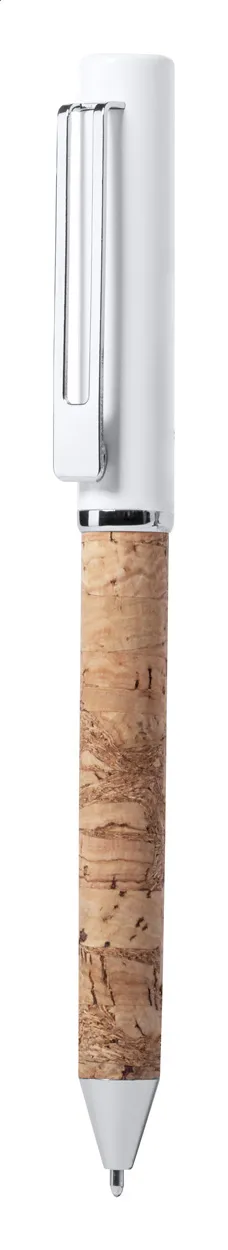 Aluminijska kemijska olovka s mehanizmom za uvrtanje i bačvom obloženom prirodnim plutom. S plavim punjenjem. Dolazi u kutiji od kraft papira.