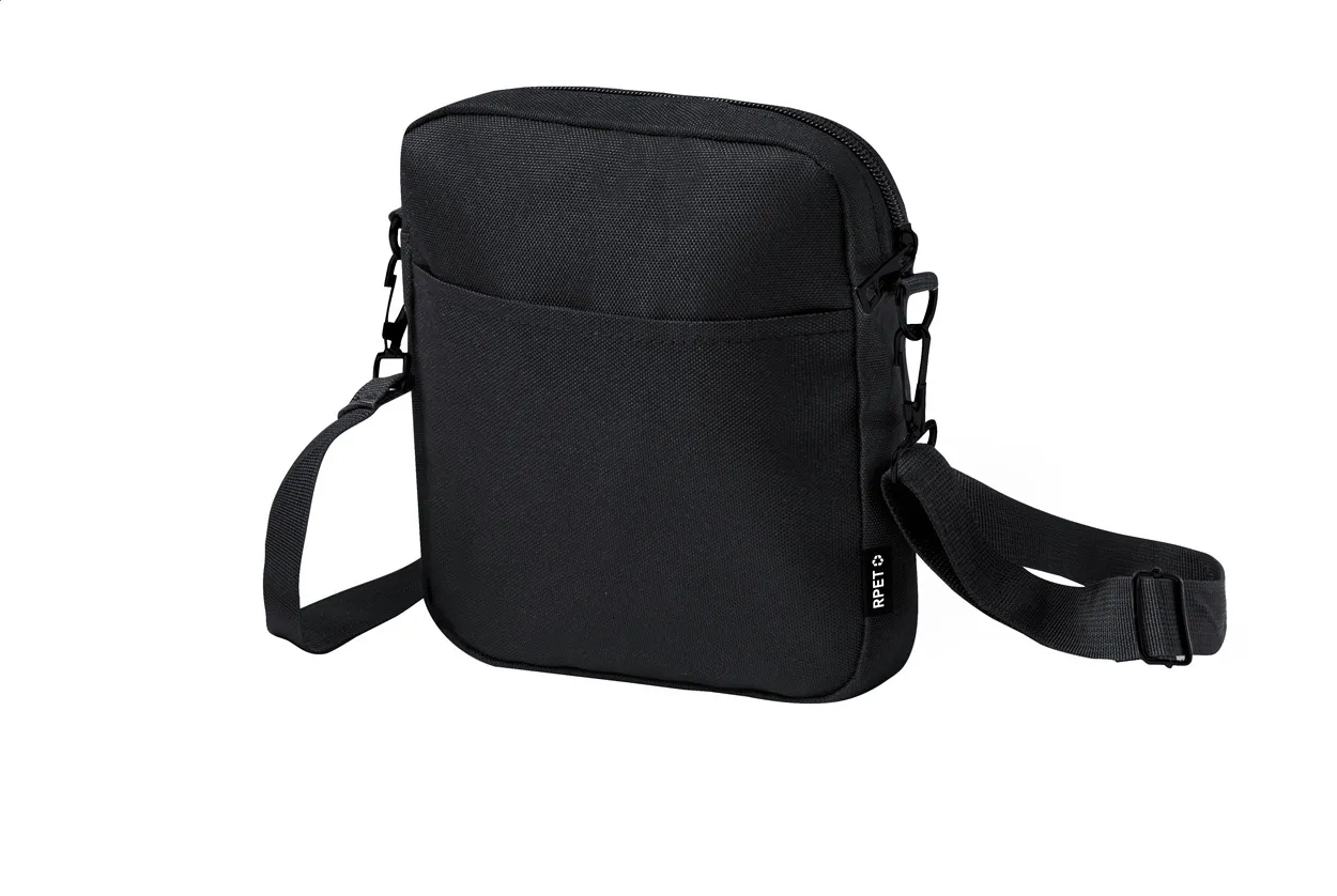 RPET torba za nošenje preko ramena s pretincima na patentni zatvarač i podesivom trakom izrađena od 600D RPET poliestera s prepoznatljivom RPET etiketom
