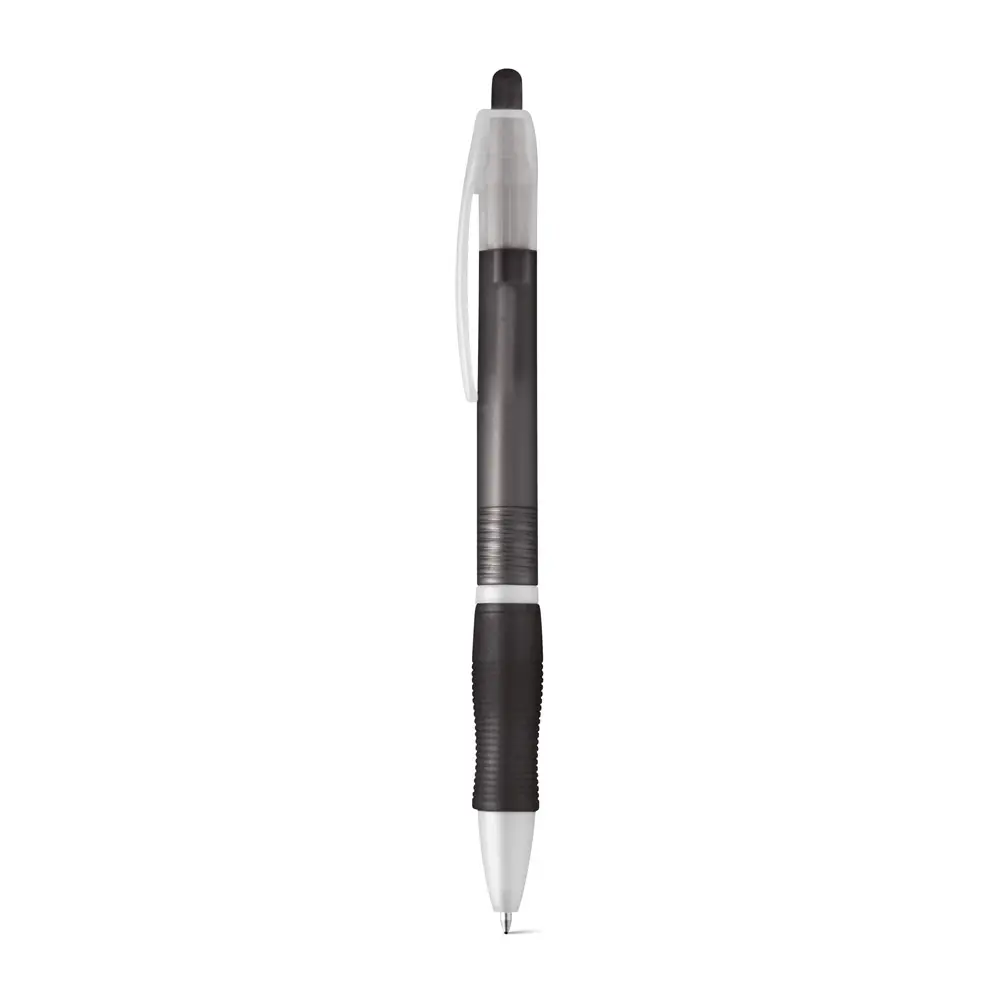 €0.08ABS kemijska olovka s klipom i obojenim protukliznim držačem, plava tinta, promjer 10 mm, duljina 145 mm