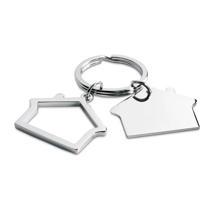 Metalni privjesak za ključeve u obliku kuće pojedinačno pakiran u bijeloj kartonskoj gift box kutiji