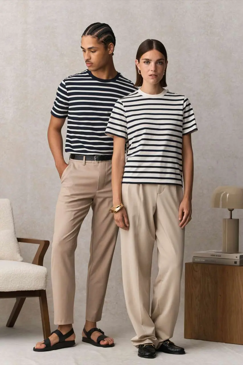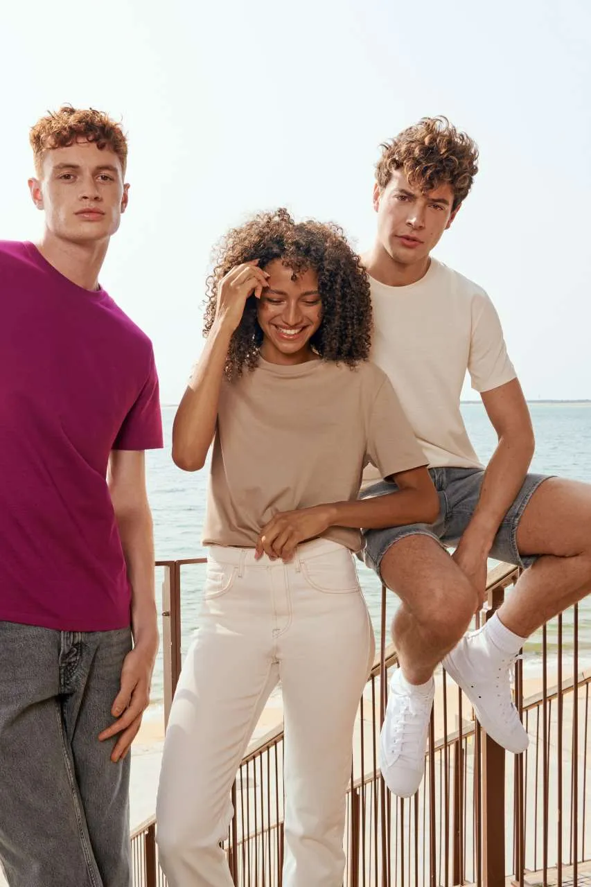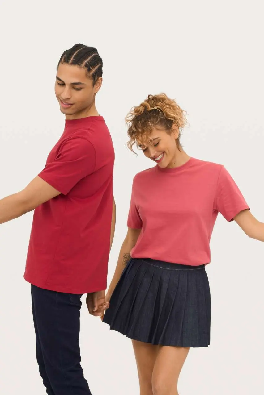 Jersey 175, 100% češljani organski pamuk u prijelaznom razdoblju, rebrasti okrugli ovratnik, traka u ovratniku, krojeno i sašiveno, moderan i udoban kroj