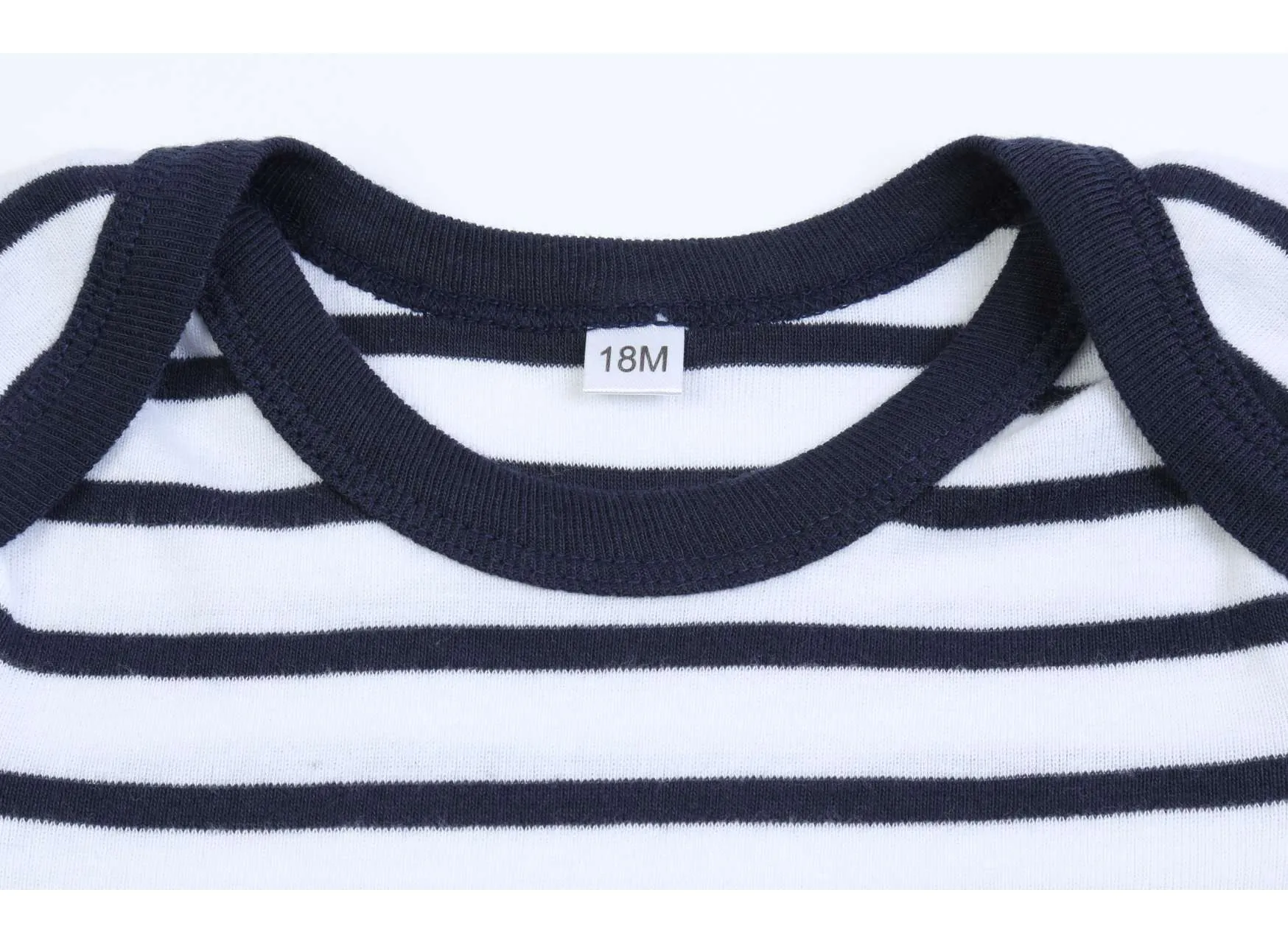 100% češljani ringspun pamuk ojačanje na ovratniku američki izrezi na rukama kontrastni obrub kopčanje na drukere u području prepone