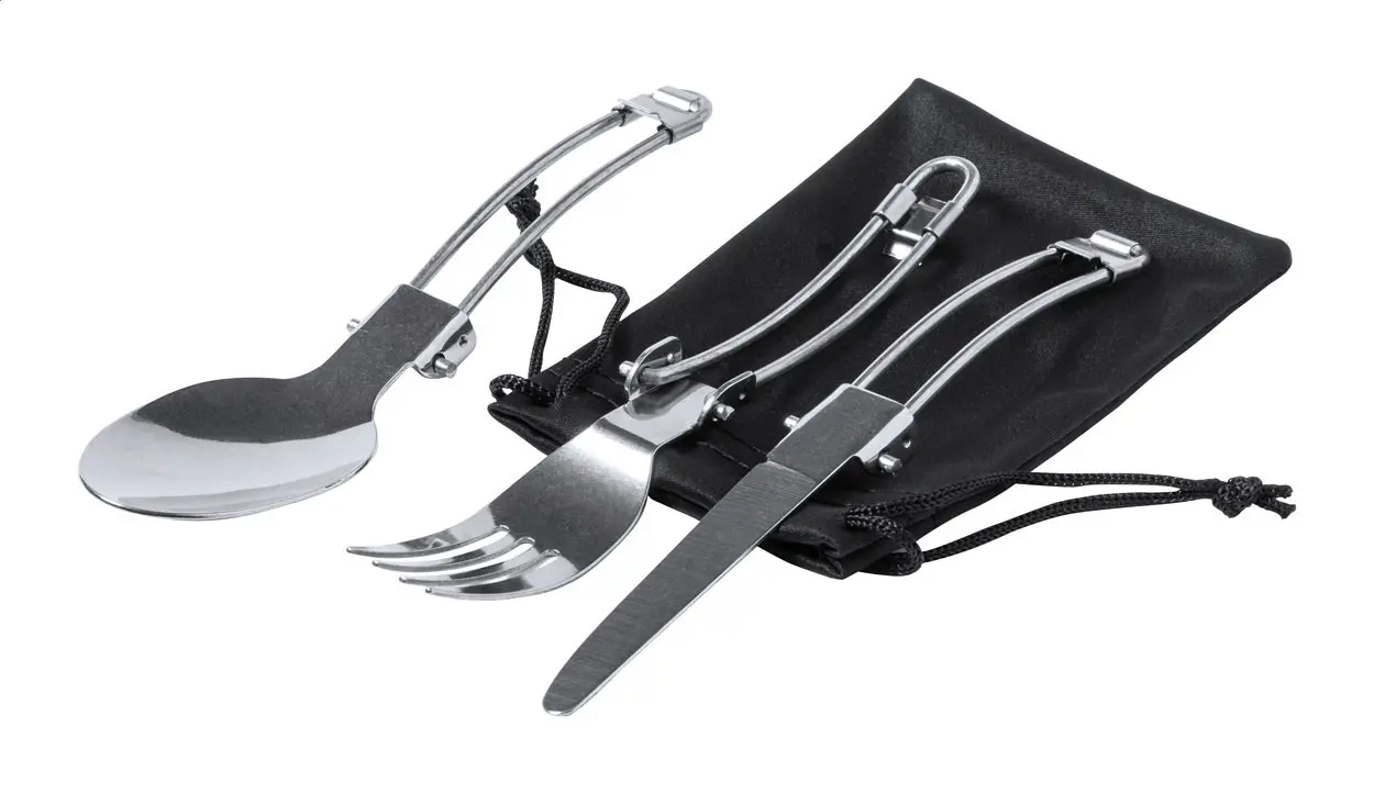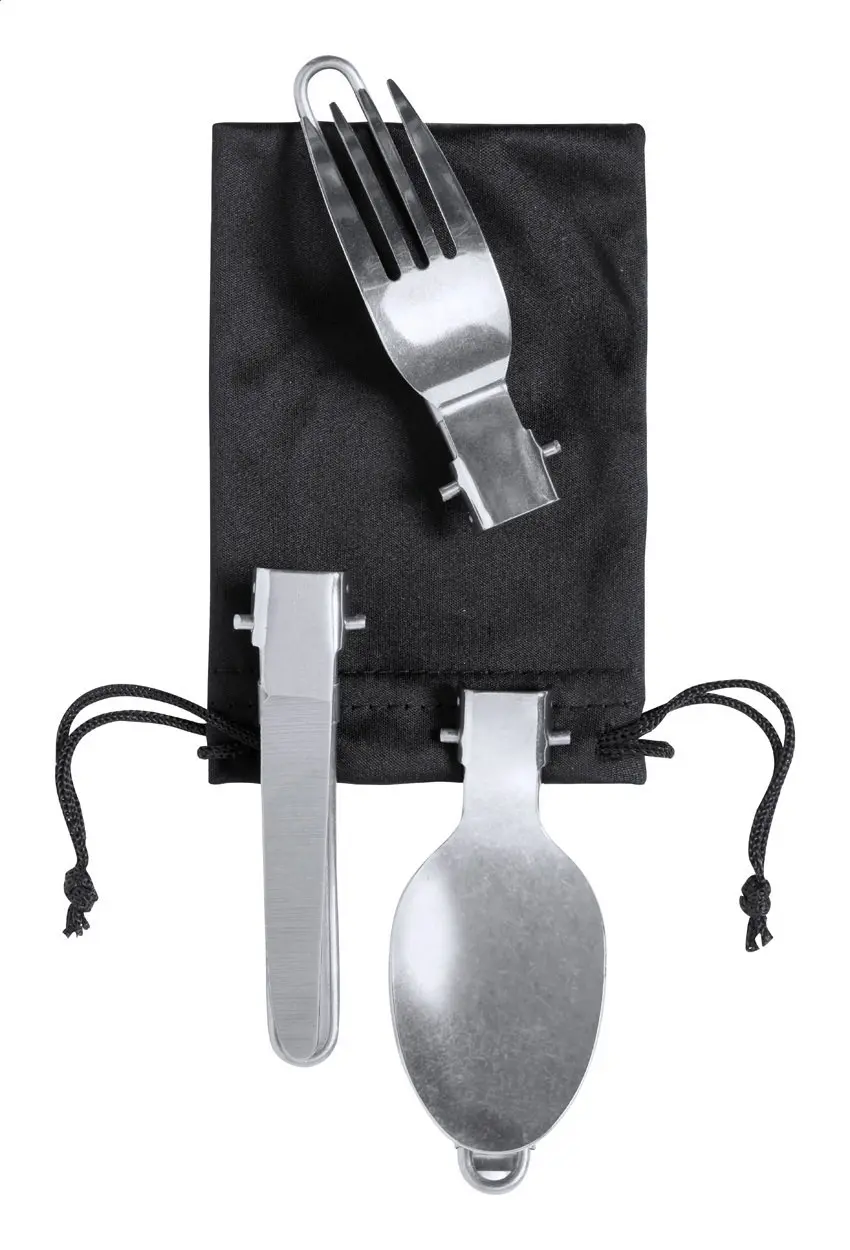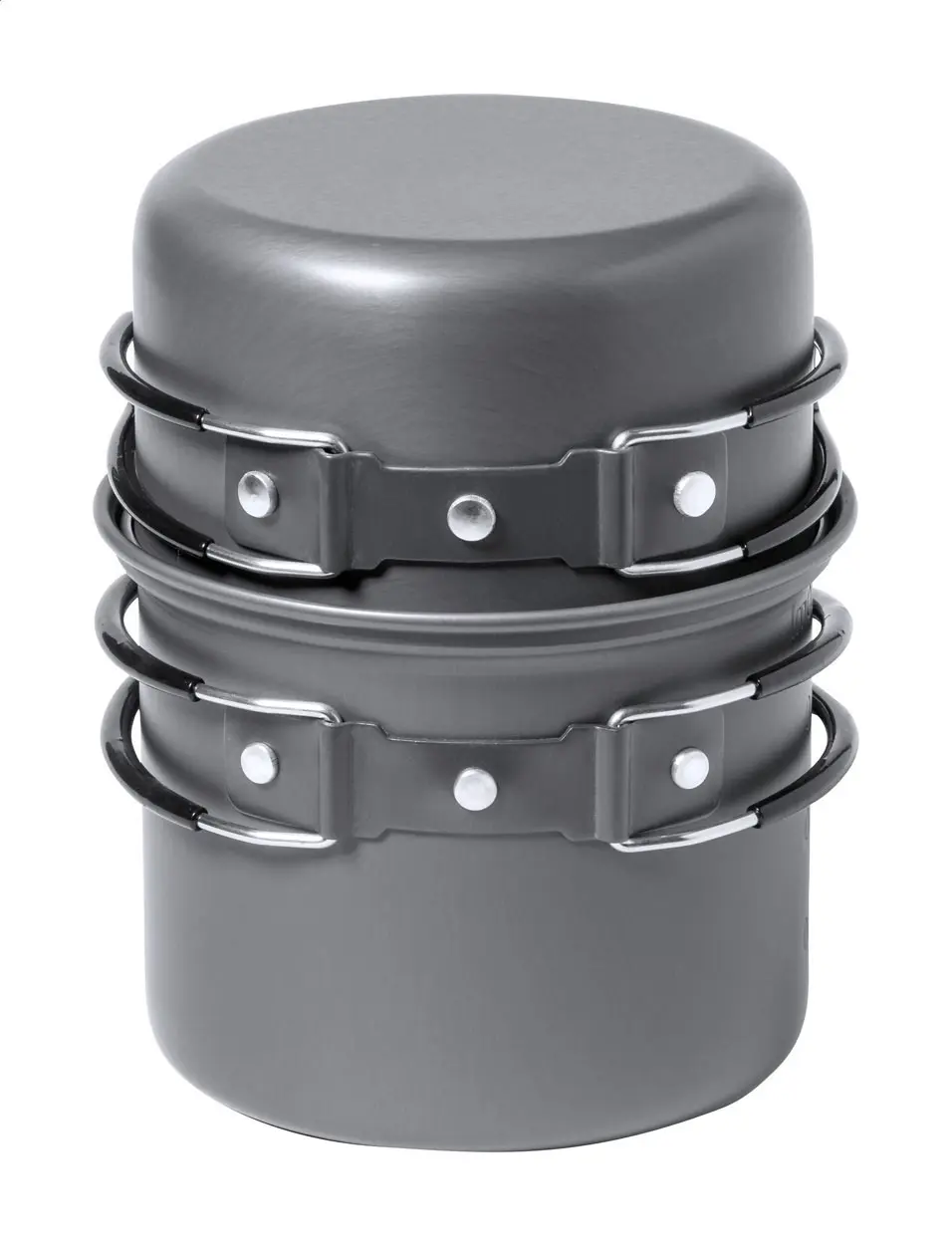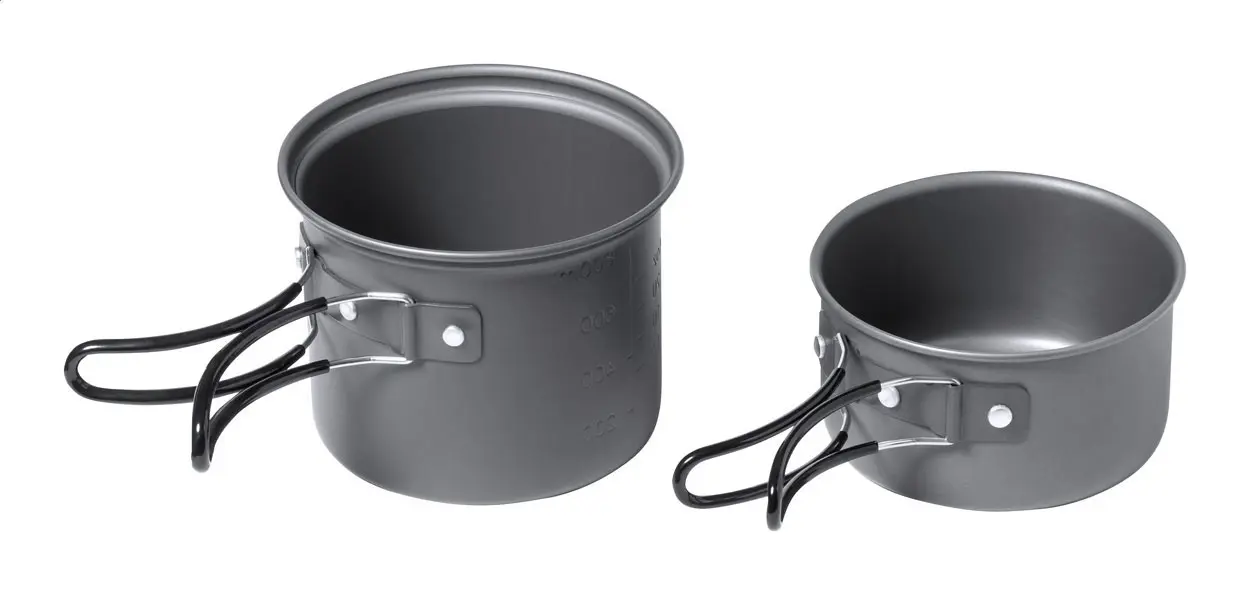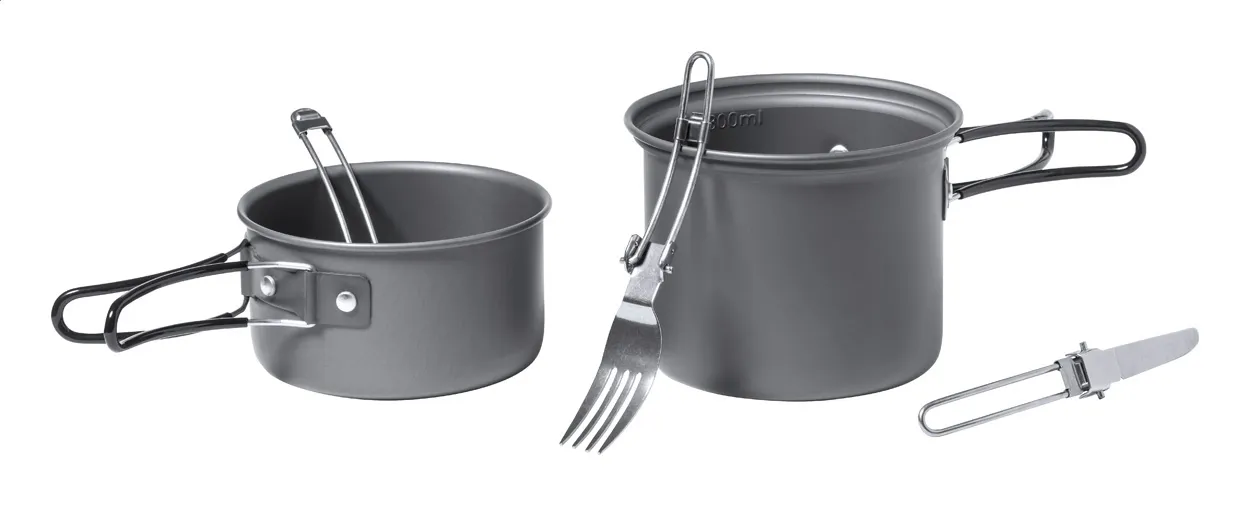 €27.55Set pribora za kampiranje i lonaca uključuje 2 aluminijska lonca i set pribora od nehrđajućeg čelika (vilica, žlica, nož) u RPET poliesterskoj vrećici