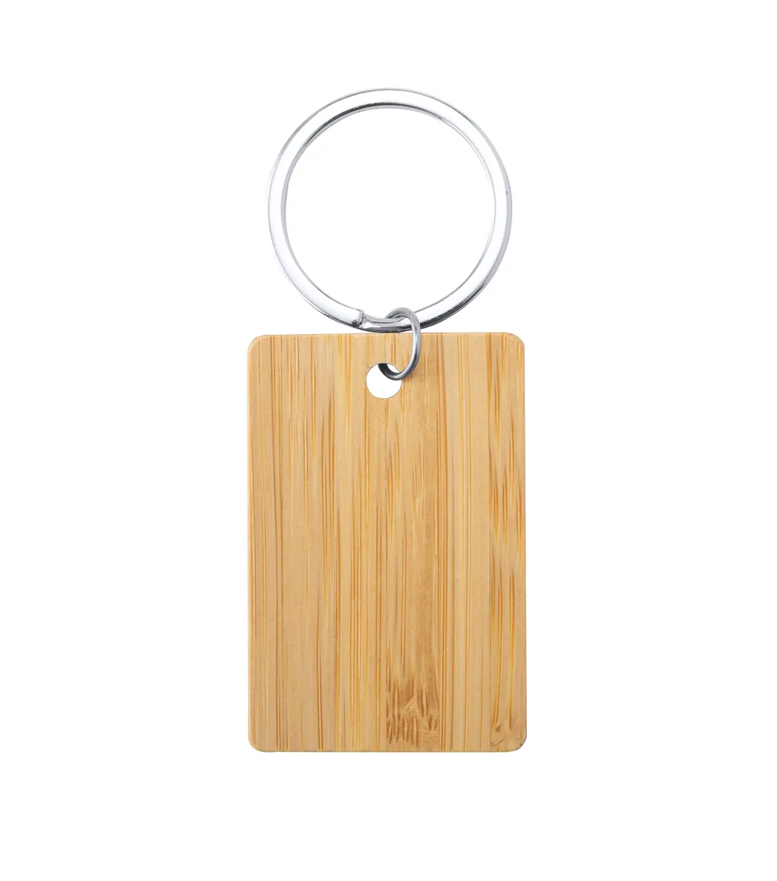 Privjesak za ključeve od bambusa s metalnim prstenom.