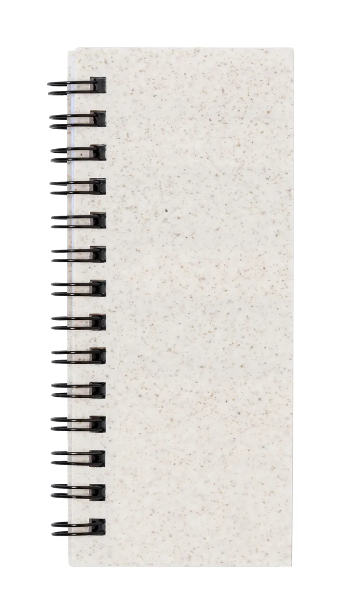 Ekološka bilježnica s koricama od plastike od pšenične slame, spiralni uvez, 30 crtanih listova od recikliranog papira, 25 samoljepljivih papirića i 125 označivača stranica (u 5 različitih boja)
