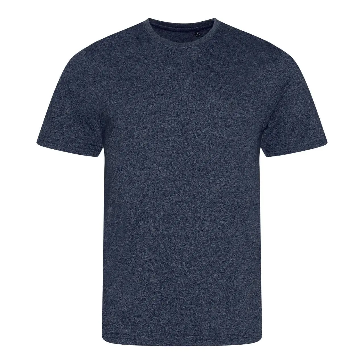 50% pamuk 50% poliester moderan kroj majica kratkih rukava etiketa s veličinom melange efekt tkanine traka na vratu dvostruki šavovi na rukavima i donjem rubu rebrasti okrugli izrez mekana tkanina bočni šavovi ušiveni rukavi proizvodnja certificirana prema WRAP standardu