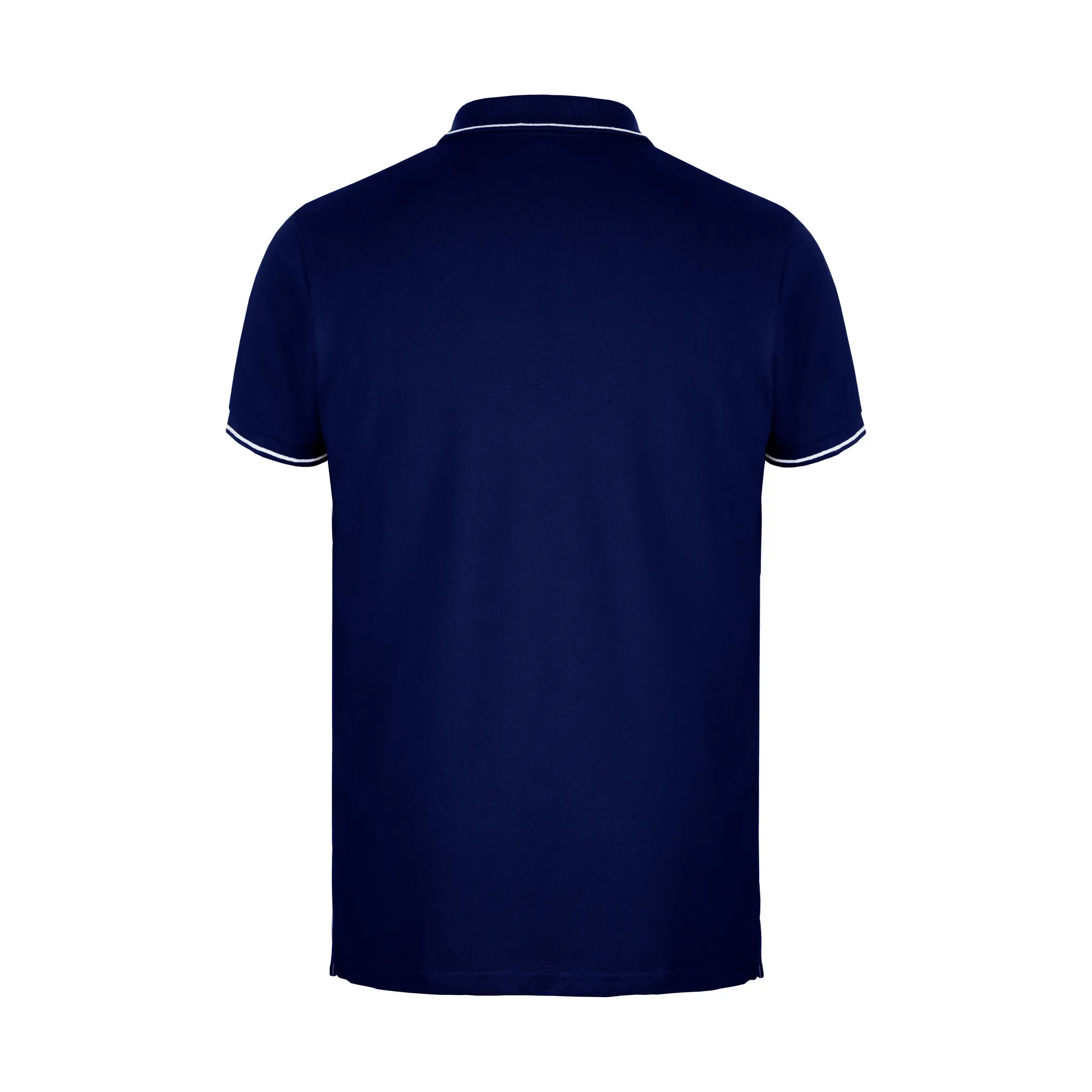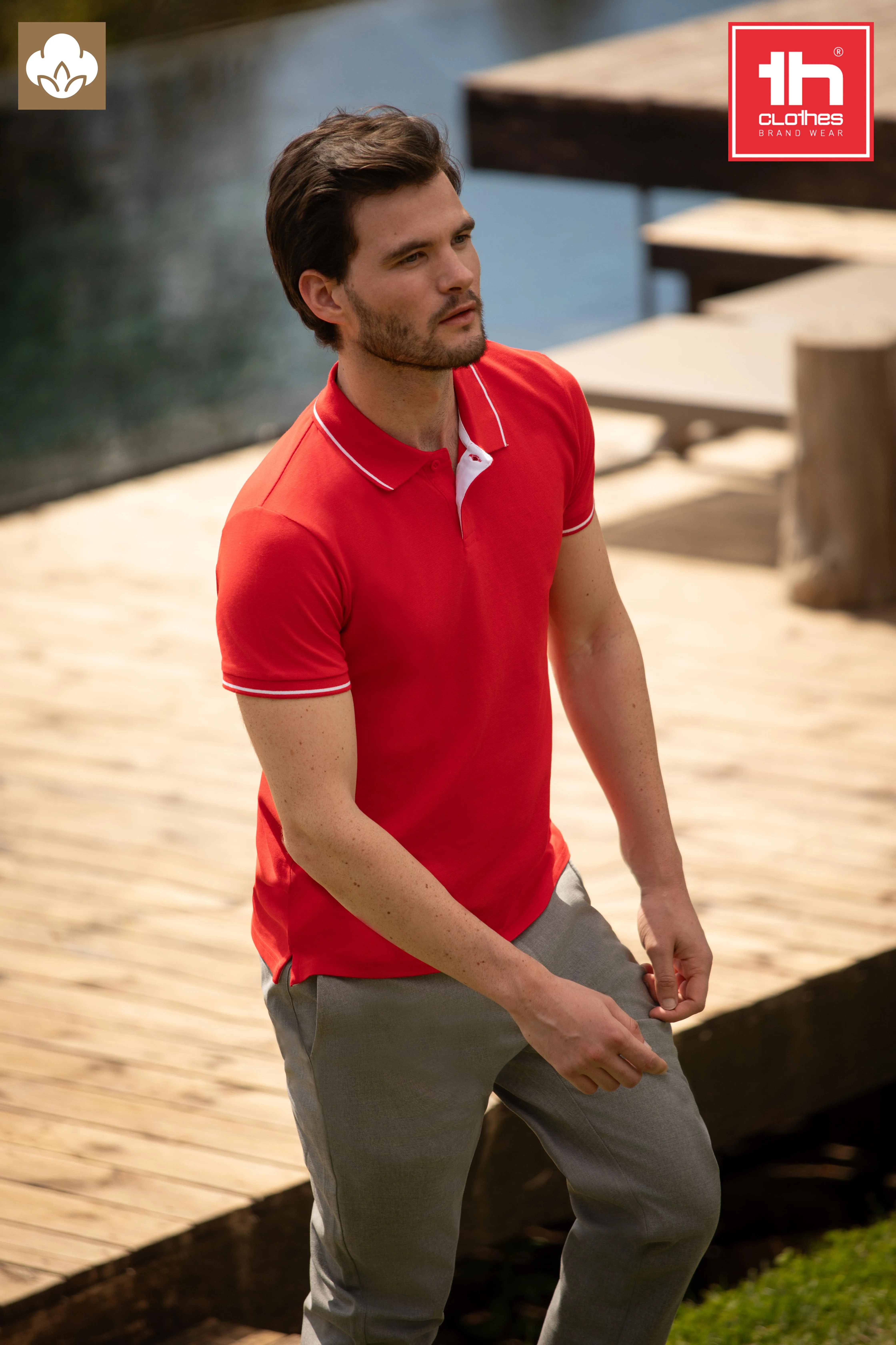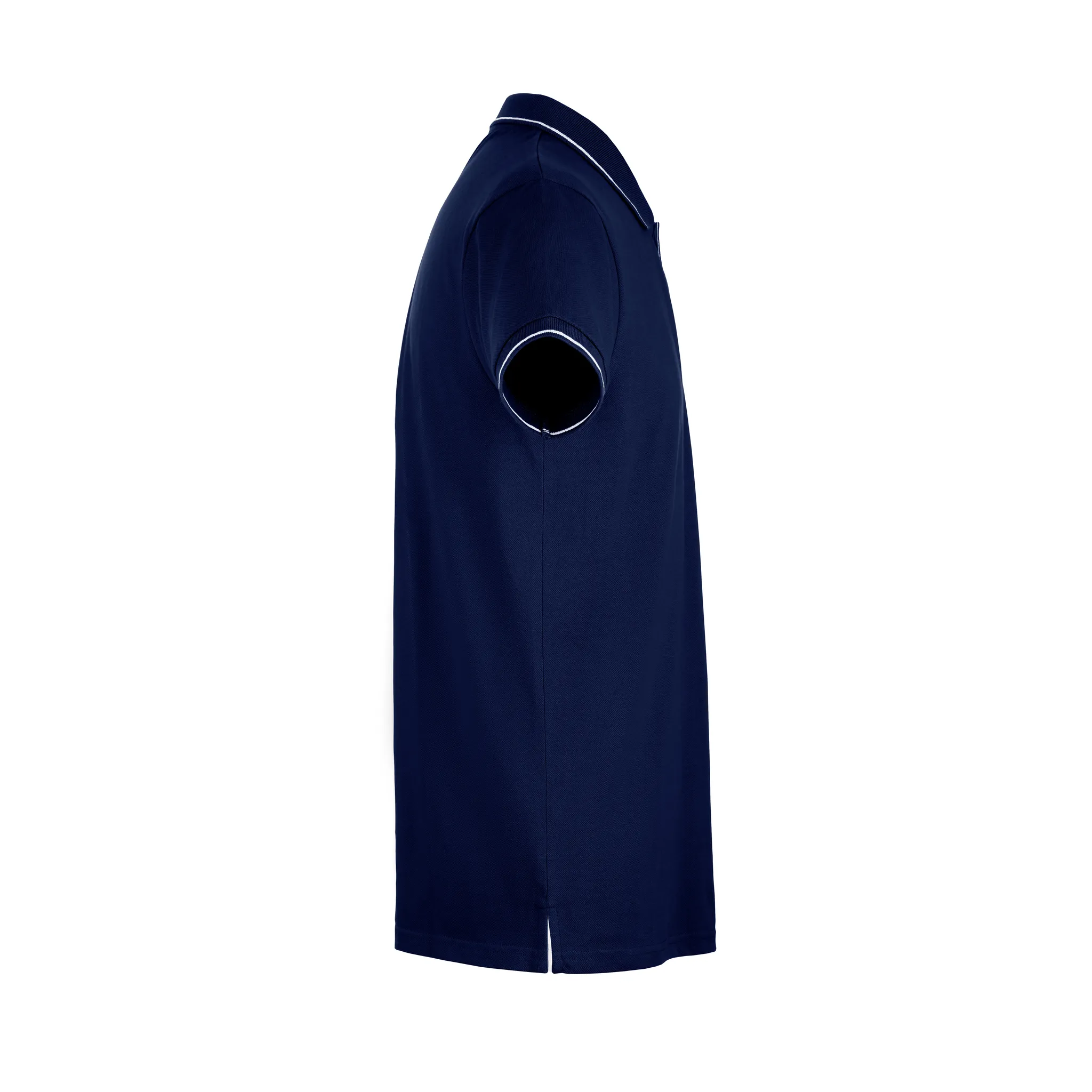 ovratnik i manšete od rebrastog 1x1 materijala, kontrastni dvobojni detalji na ovratniku, pojačanoj traci, kopčanju i manšetama, kratki rukavi, pojačano kopčanje s 2 dugmeta u tonu i rezervnim dugmetom na unutarnjem šavu, donji bočni prorezi u kontrastnoj boji