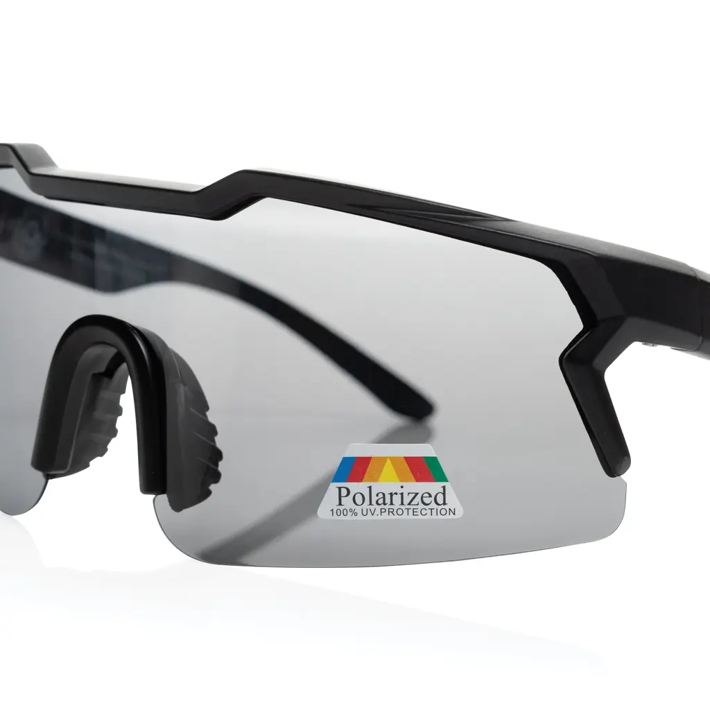 €6.39Sportske polarizirane sunčane naočale s okvirom od RCS certificiranog recikliranog PC-a, ukupni udio recikliranog materijala 50% prema masi proizvoda, RCS certifikat jamči certificirani lanac opskrbe, uključuje RPET navlaku za spremanje, polarizirane leće smanjuju odsjaj, pogodno za sport i aktivnosti na otvorenom, u skladu s EN ISO 12312-1, UV 400 i CAT 3, pakirano u FSC® gift boxu