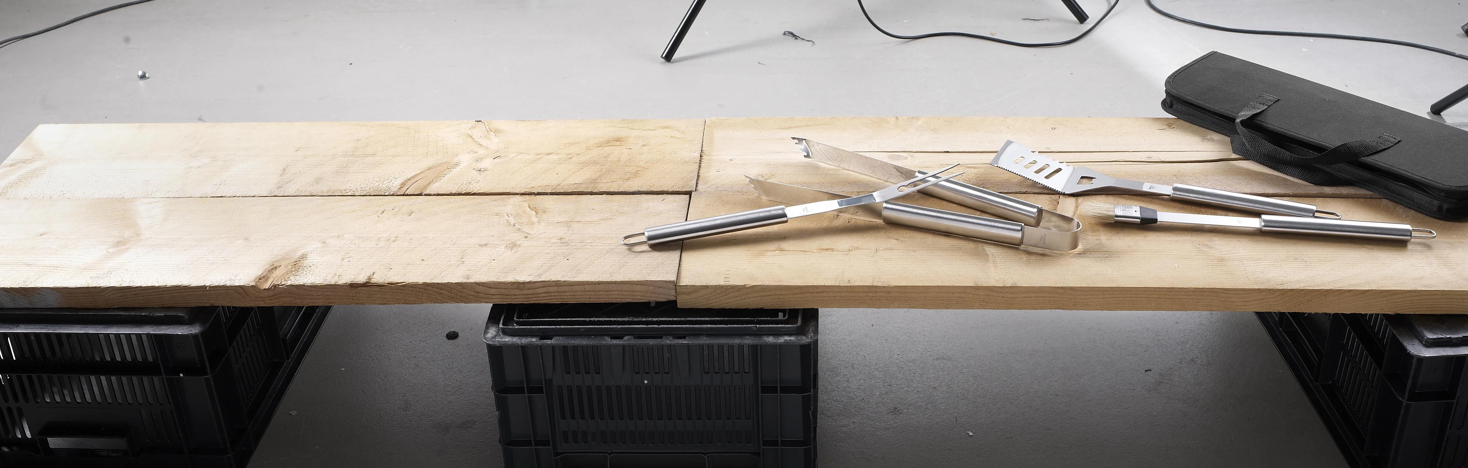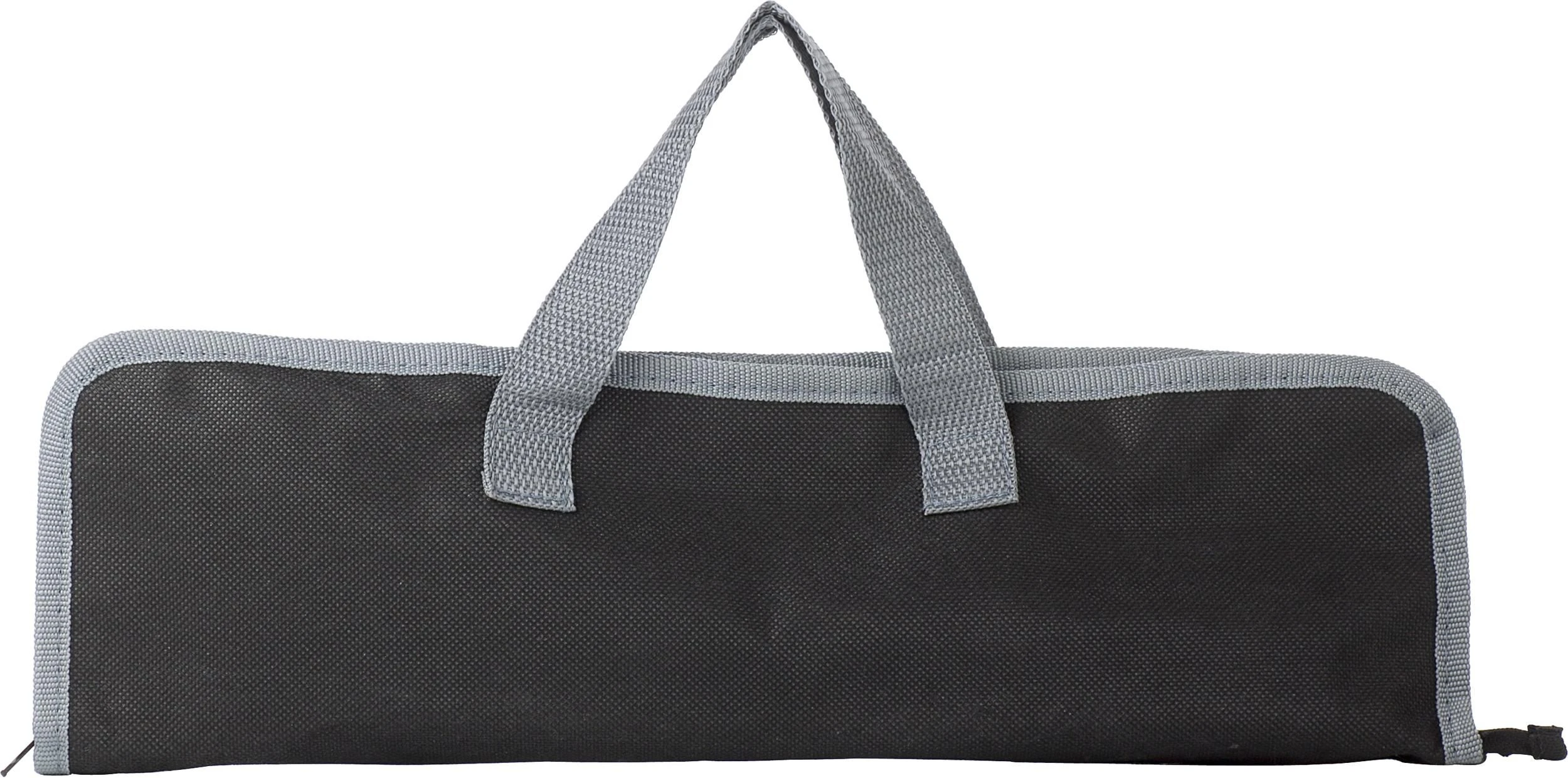 €9.15Set od tri BBQ alata od nehrđajućeg čelika u torbici od netkanog materijala, uključuje lopaticu, kliješta i vilicu