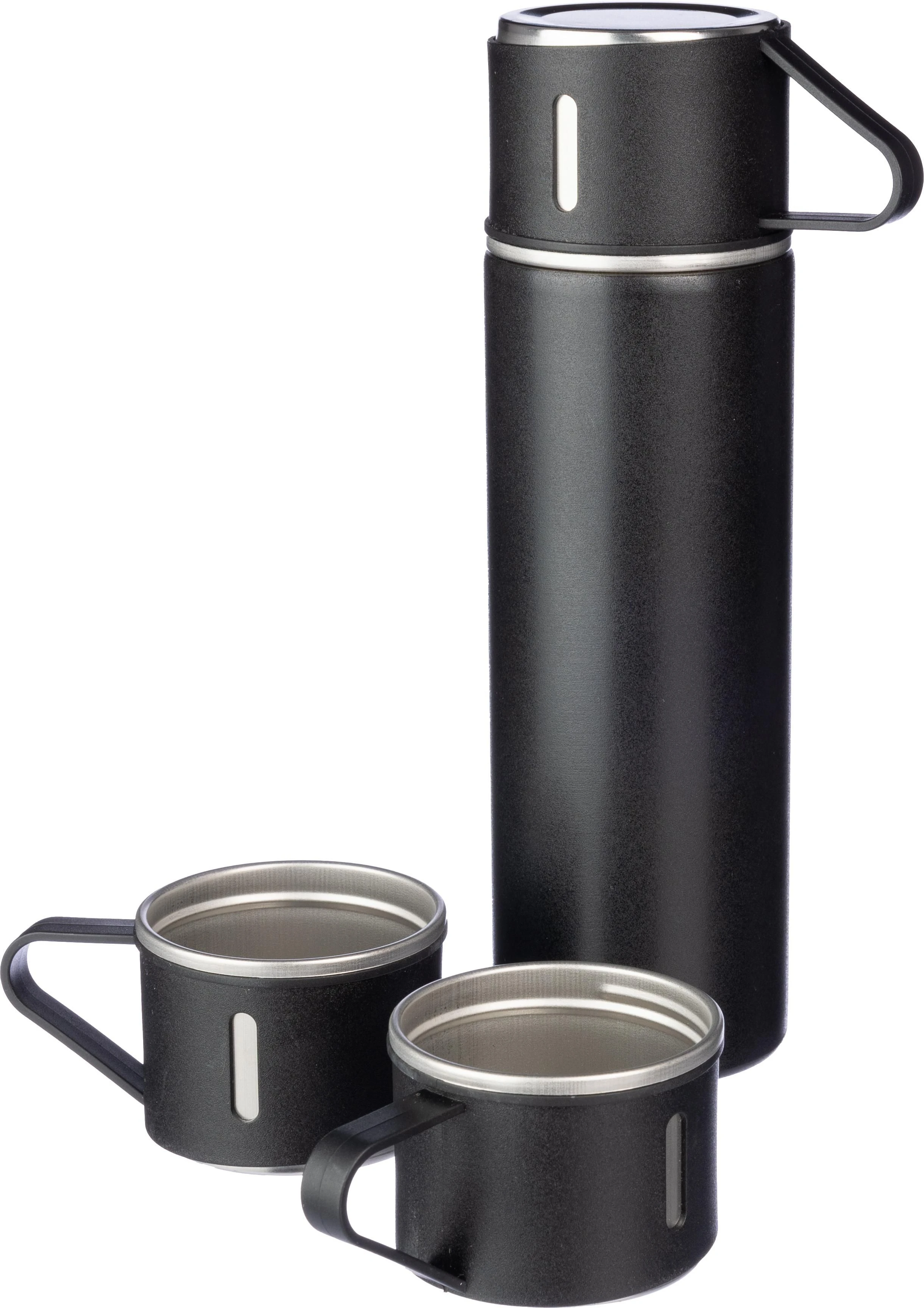 €8.27Set boce od nehrđajućeg čelika (s/s304) s dvostrukim zidovima (420 ml) uključujući dvije čaše (150 ml), pakirano zajedno u smeđu kartonsku kutiju.