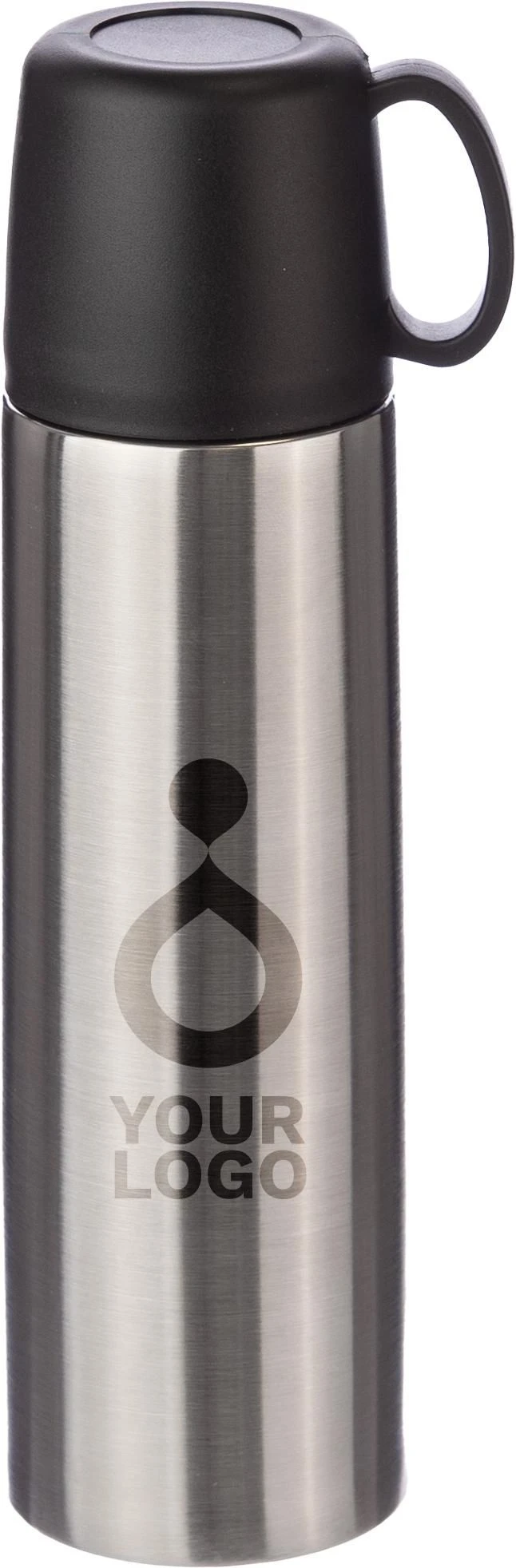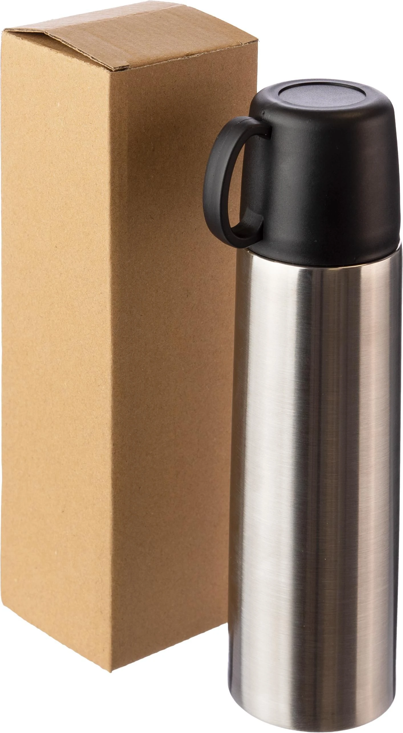 €4.19Dvostruko izolirana vakuumska boca od nehrđajućeg čelika (s/s304) zapremnine 500 ml s PP čašom/poklopcem zapremnine 130 ml pakirano pojedinačno u smeđu kartonsku kutiju