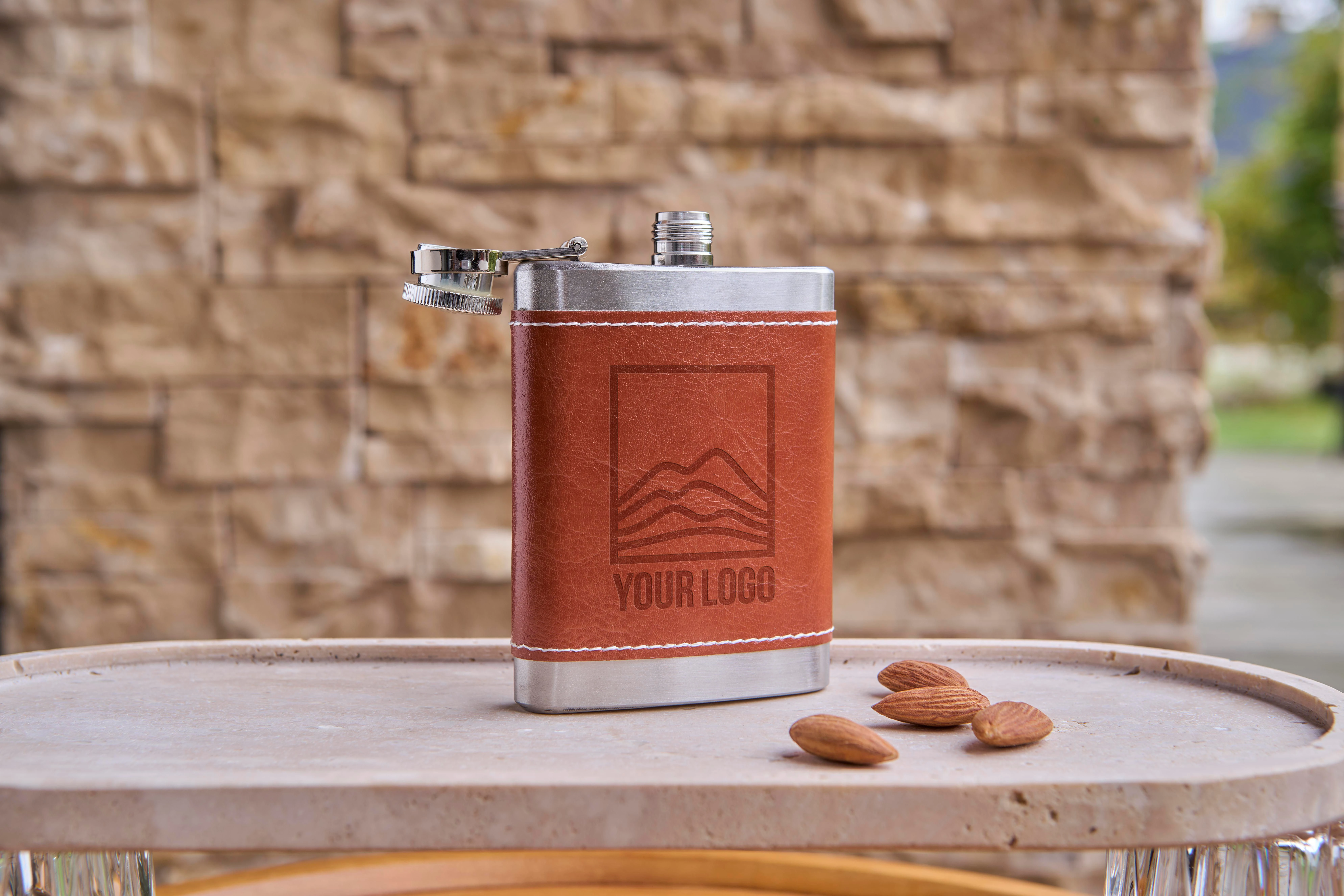 €2.43Termos boca od nehrđajućeg čelika (100 ml) s PU navlakom izrađena od nehrđajućeg čelika 304 pojedinačno pakirana u smeđu kartonsku kutiju