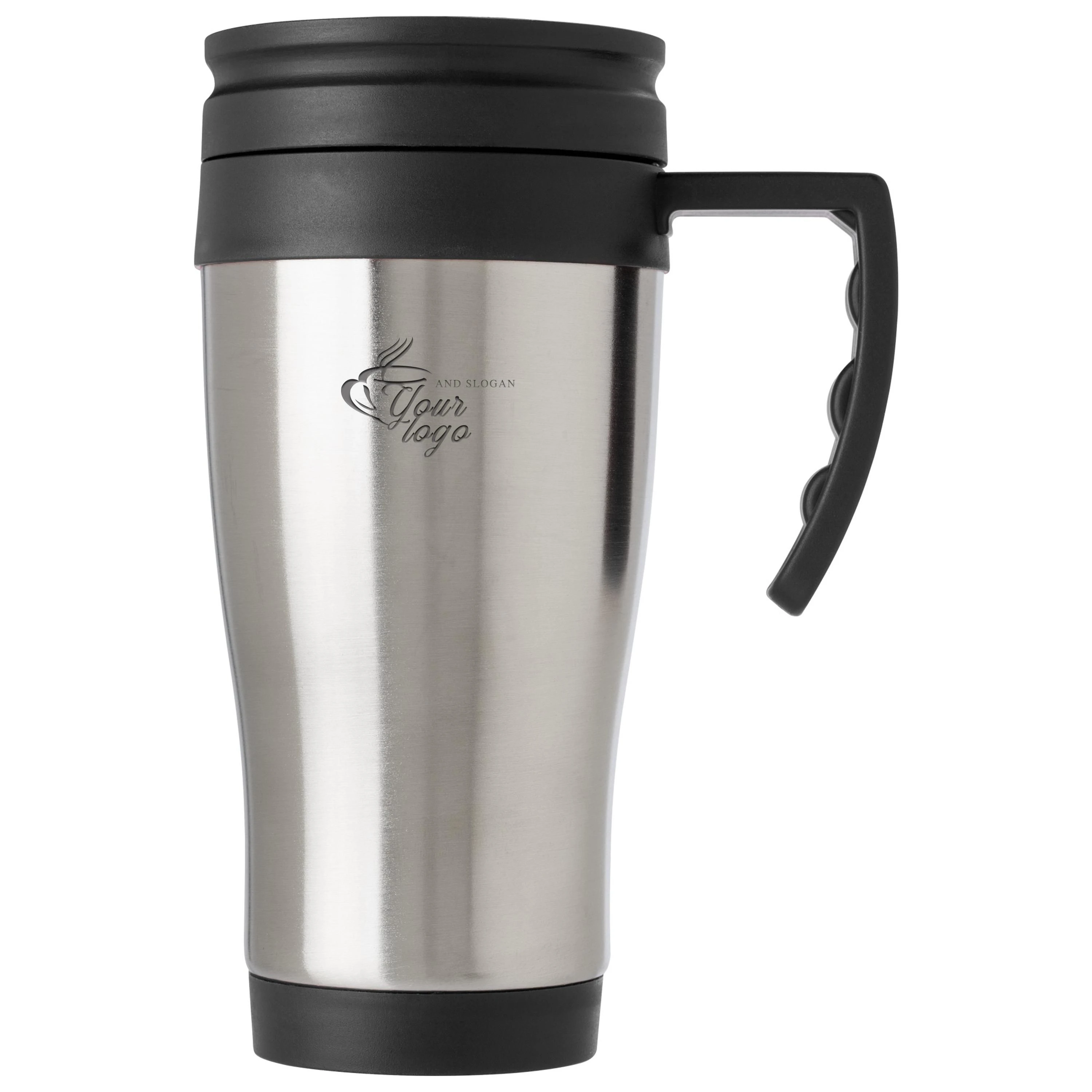 €3.91Termo šalica od nehrđajućeg čelika i PP-a (420 ml), dvostruka stijenka, poklopac s otvorom za piće koji se zatvara kliznim ventilom