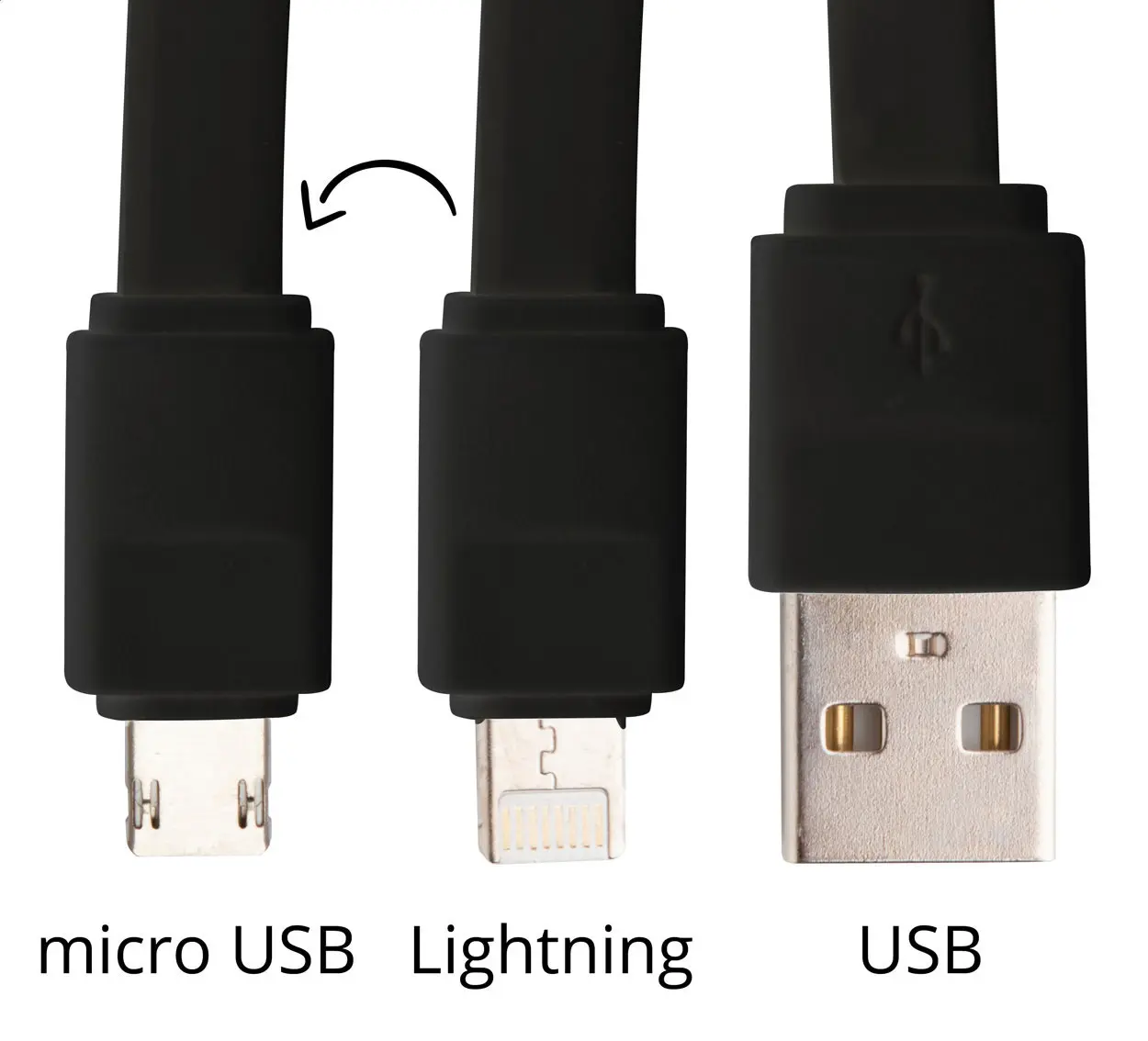 USB kabel za punjenje s mikro USB i Lightning konektorima, u plastičnoj kutiji. Duljina: 25 cm.