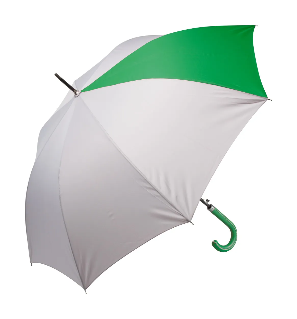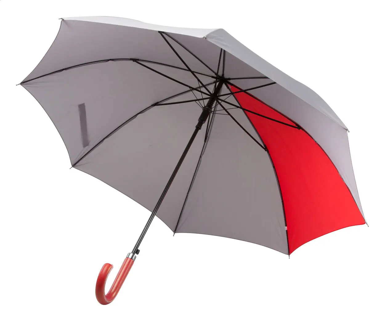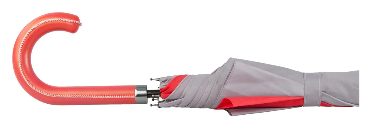 €7.95Automatski, otporan na vjetar kišobran s 8 panela, jedan obojeni panel, drška od PU kože, metalna šipka i okvir od metala/fiberglasa. 190T pongee.