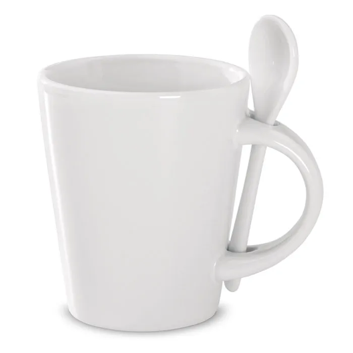 €2.73Šalica od keramike kapaciteta 300 ml sa specijalnim premazom za sublimacijski tisak žlica na dršci pojedinačno pakiranje u bijeloj kartonskoj kutiji