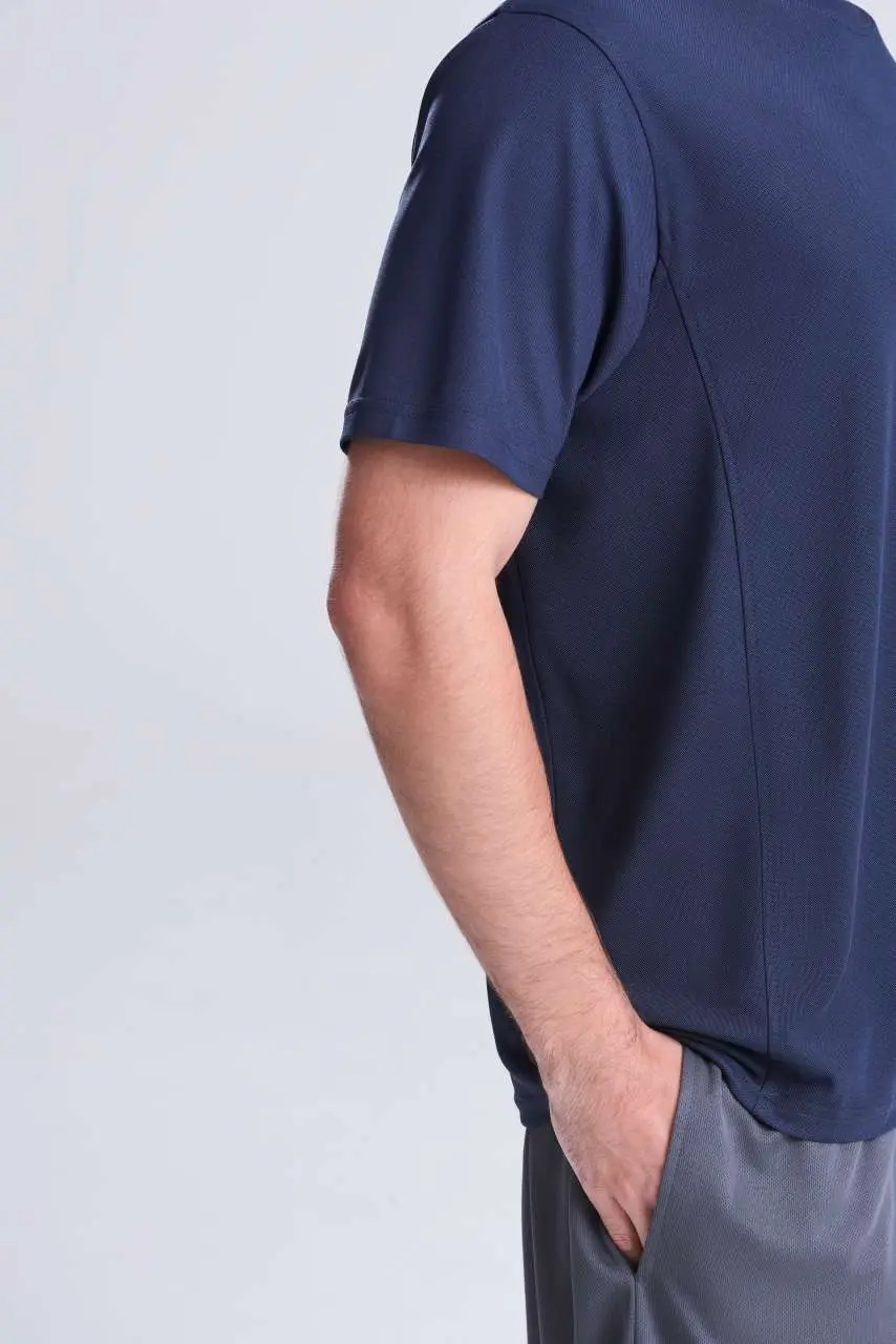 €0.71100% poliester, opušteni kroj, bočni paneli od istog materijala ergonomski oblikovani, SuperCool™ tkanina s poboljšanim svojstvima upijanja i antibakterijskom završnom obradom, odvojiva etiketa, okrugli izrez od istog materijala, dvostruki šavovi, traka na leđima od istog materijala, UPF 30+ UV zaštita, rastezljiva tkanina, ušiveni rukavi, polumjesec na leđima