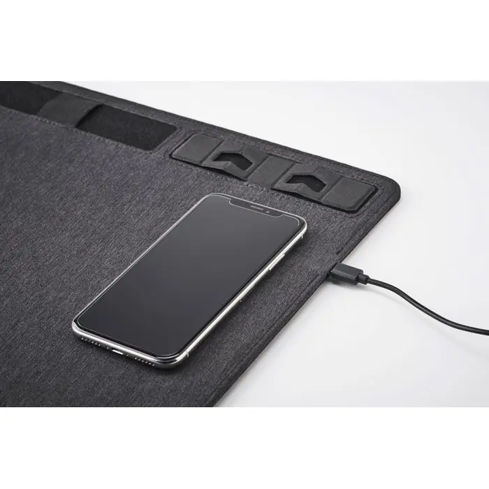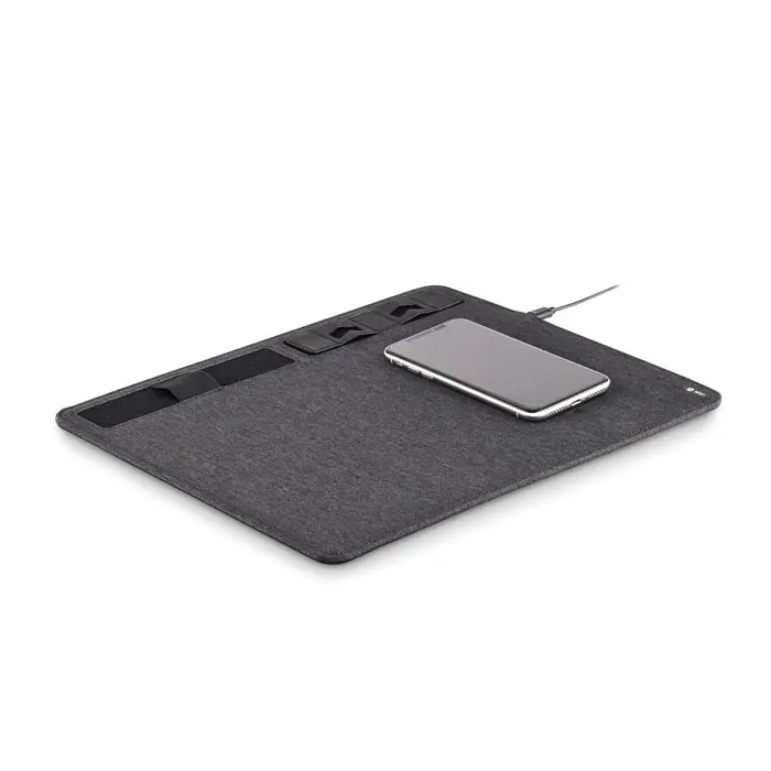 €13.25Višenamjenska podloga za miš od dvoslojnog 300D RPET poliestera s bežičnim punjačem snage 15W i funkcijom stalka za telefon, izlaz DC 9V/1,6A (15W) za brzo punjenje