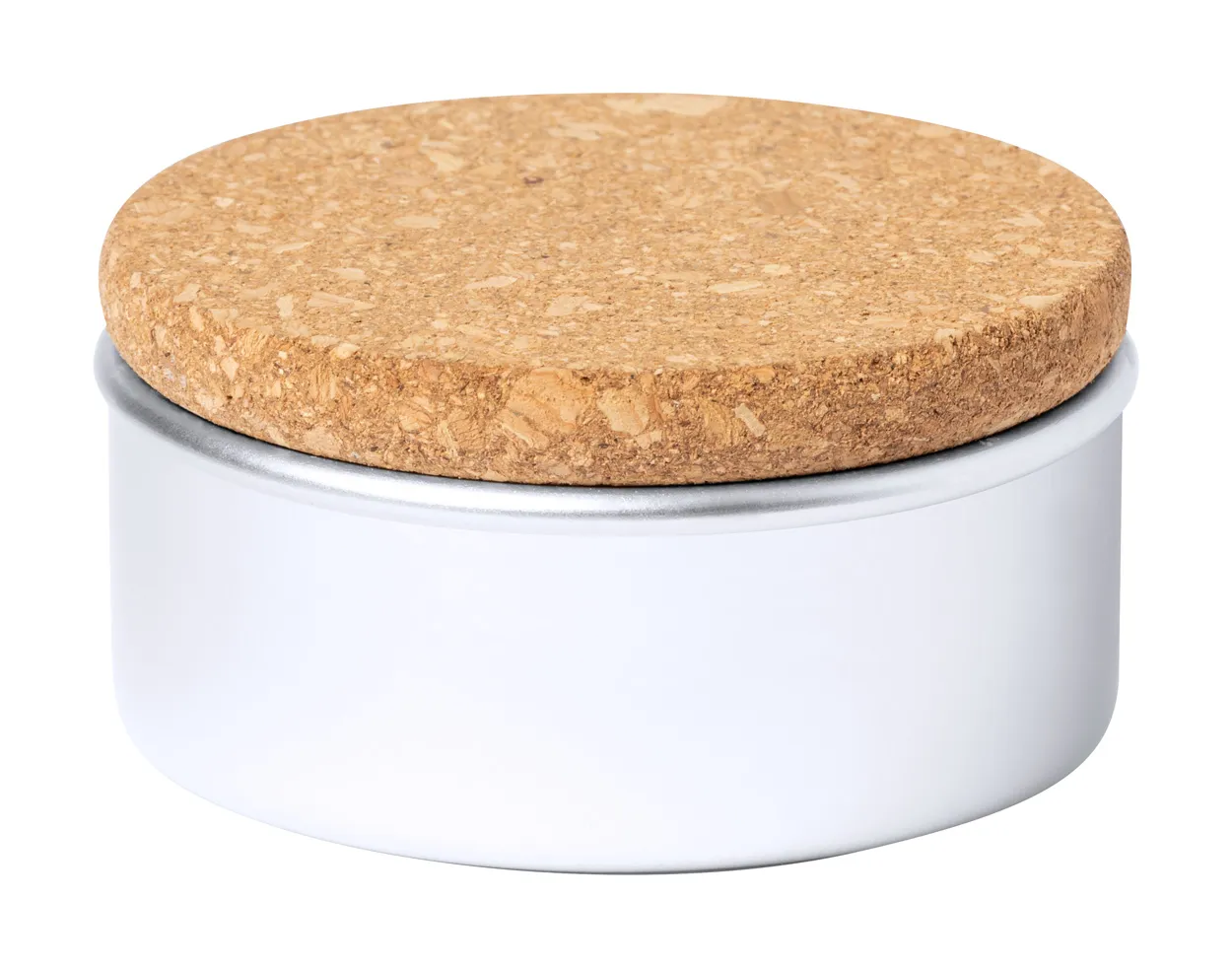 Svijeća od biljnog voska s mirisom vanilije u aluminijskoj posudici s prirodnim čepom od pluta
