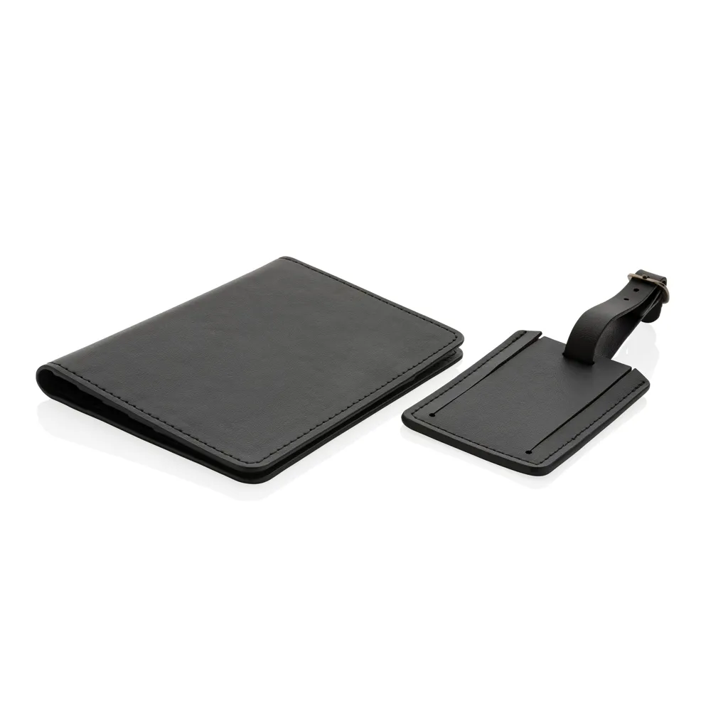 Držač za putovnicu od recikliranog PU materijala s dodatnim pretincima za kartice i javni prijevoz odgovara oznaci za prtljagu isporučuje se u gift box izrađen od GRS certificiranih recikliranih materijala ukupni udio recikliranog materijala: 70% prema ukupnoj masi proizvoda pakirano u FSC certificiranoj gift box
