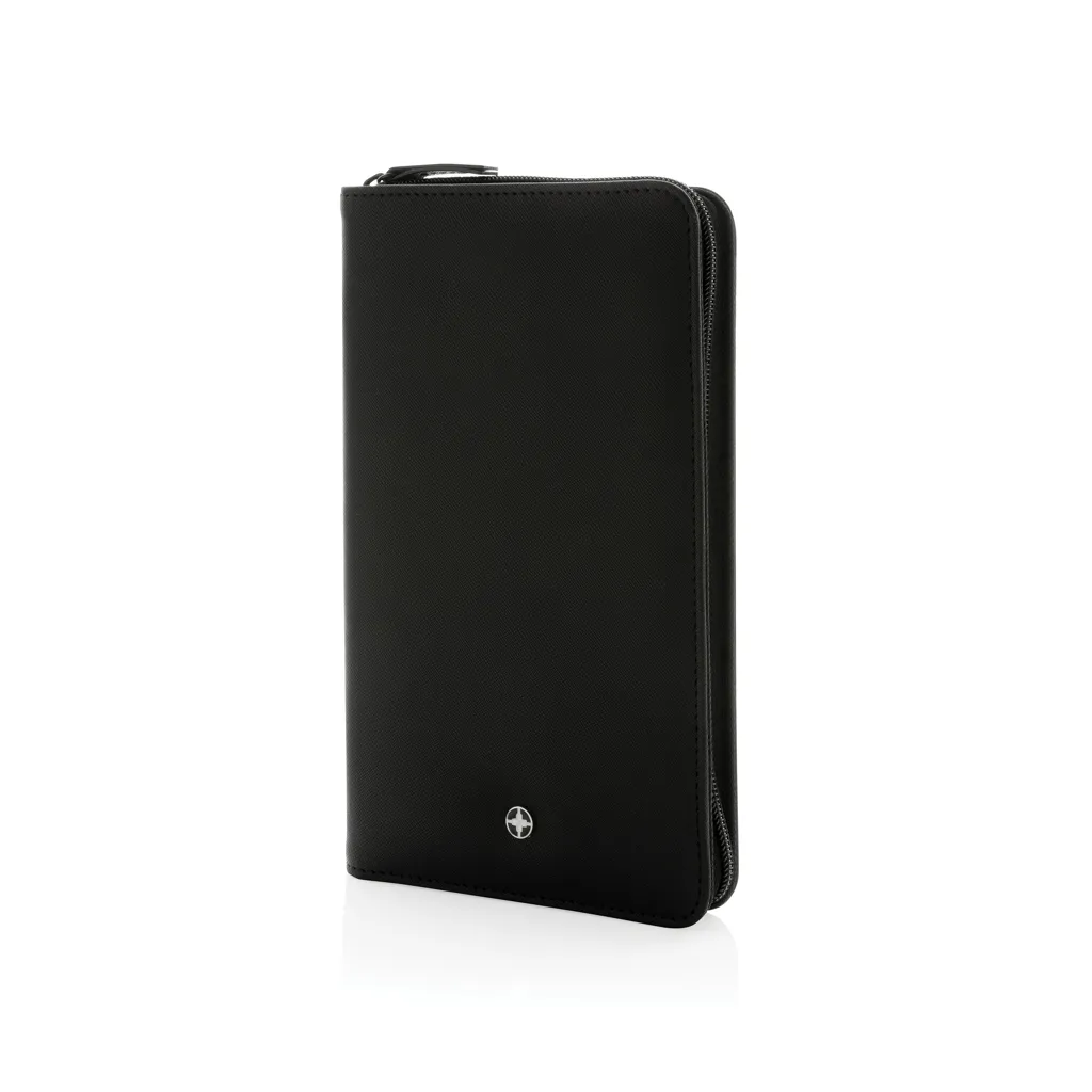 Putni novčanik s RFID zaštitom za pohranu putnih dokumenata poput putovnice, karata i novca sadrži 4 pretinca za kartice, držač za olovku i prostor za mobilni telefon izrađen od RCS (Recycled Claim Standard) certificiranih recikliranih materijala ukupni udio recikliranog materijala: 21% prema ukupnoj masi proizvoda bez PVC-a