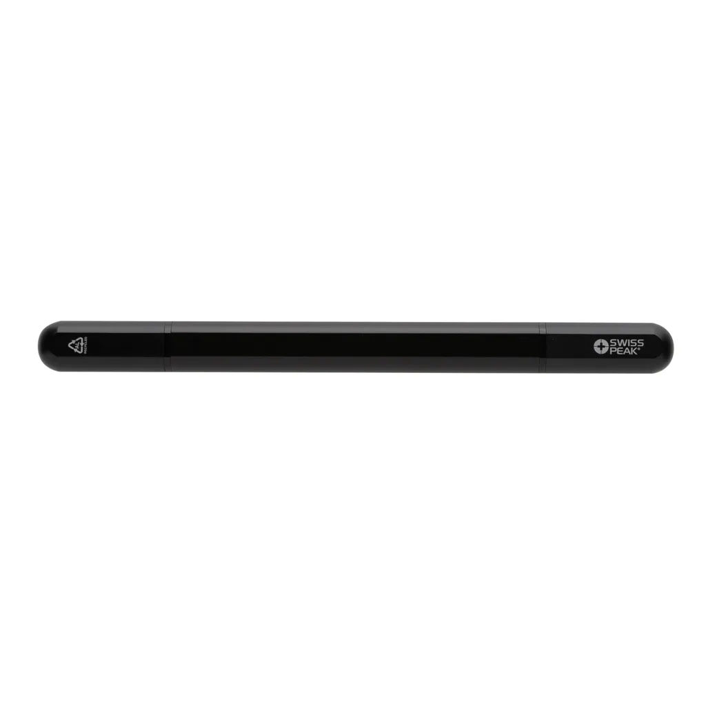 €6.41Olovka od recikliranog aluminija s RCS certifikatom, 83% recikliranog sadržaja, s grafitnim vrhom na jednoj strani i kemijskom olovkom s plavom tintom na drugoj strani, širina pisanja 1 mm, duljina pisanja 1200 metara, isporučuje se u crnoj Swiss Peak poklon kutiji od FSC® materijala