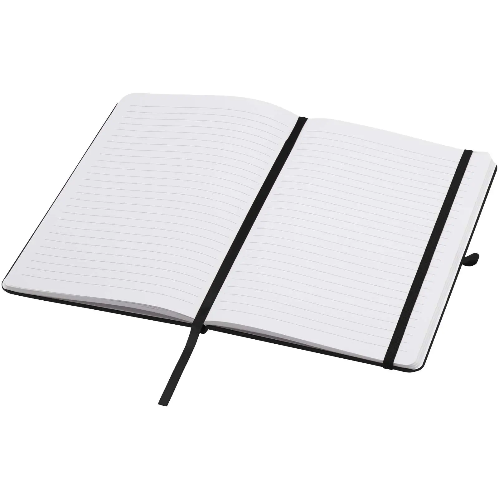 Teak A5 bilježnica s tvrdim koricama od recikliranog kartona i zaobljenim kutovima, 96 liniranih listova papira 70 g/m2, mekani omot, s držačem za olovku, elastičnom trakom za zatvaranje i oznakom