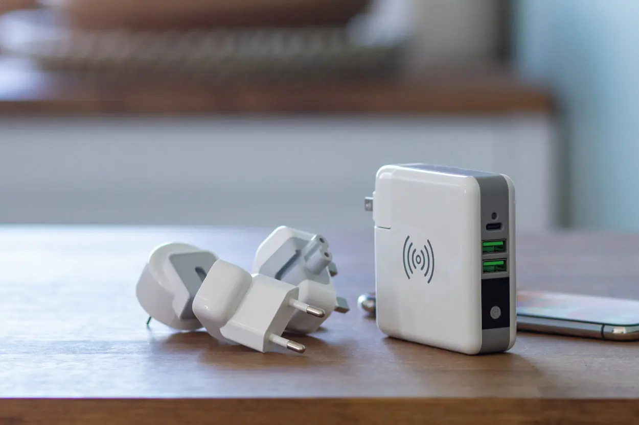 €153.69Višenamjenski powerbank / putni adapter s izmjenjivim utikačima za SAD, Europu, UK i Australiju, kapaciteta 6700 mAh, ugrađeni bežični punjač (5W), 2 USB i 1 USB-C priključak (maksimalni izlaz 2400 mA)