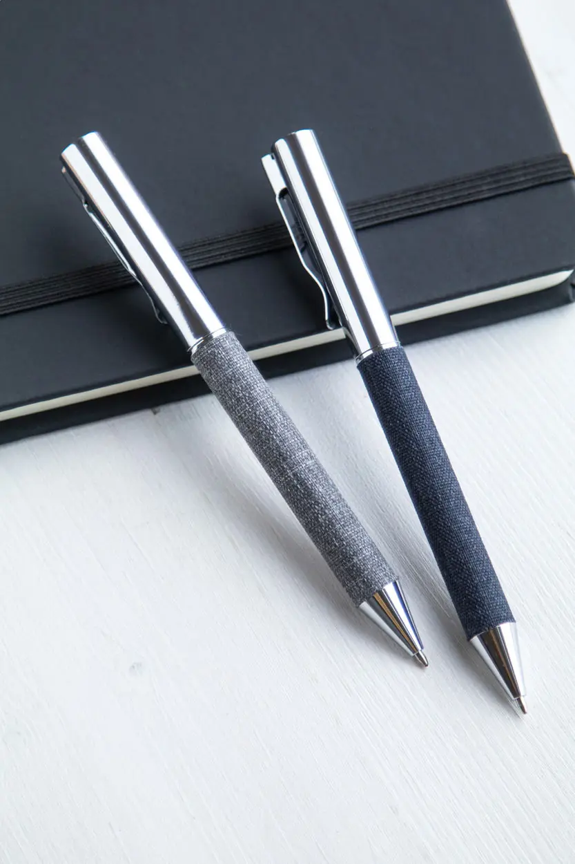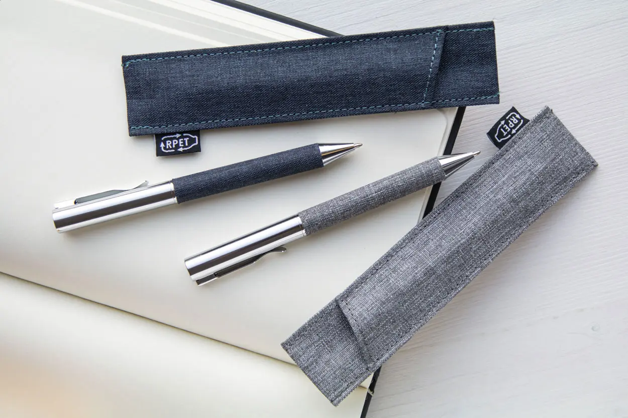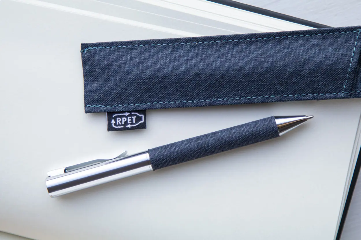 €7.41Metalna kemijska olovka s mehanizmom za uvrtanje i cilindrom obloženim RPET poliesterom. Dolazi u odgovarajućoj futroli od RPET poliestera. S plavim punjenjem.