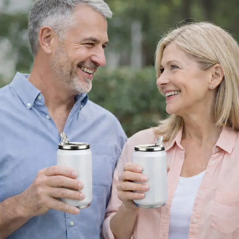 €16.70The 250 ml KANILO thermal mug is shaped like a can and features a hidden straw, making it stand out from classic thermal models. The double wall with vacuum insulation keeps drinks hot and cold for up to 4 hours. The flip-top lid with top-opening flap and the "lift" mechanism ensure convenient use. The cup is reusable, leak-proof and practical for everyday use - ideal for the office, car or on the go.