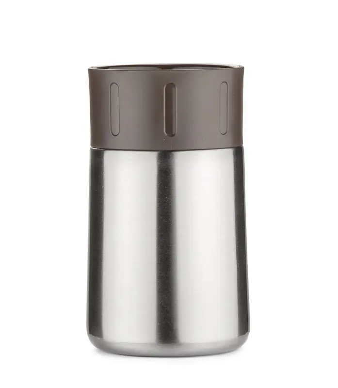 Termos čaša MATIN kapaciteta 320 ml je suvremeni i praktični dodatak za svakodnevnu kavu. Dvostruke stijenke održavaju temperaturu pića, a inovativni 360° rotirajući otvor omogućuje pijenje s bilo koje strane - bez potrebe za traženjem "prave". Kompaktna, nepropusna i praktična - odlična za posao, putovanja i svakodnevne obaveze.