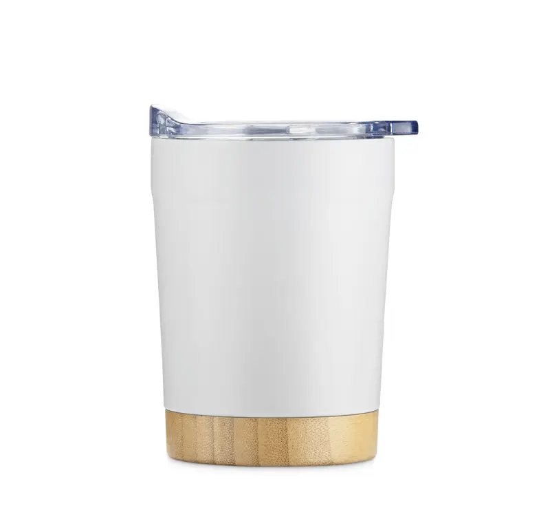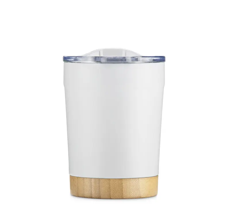 €15.84The MOKU 300ml thermal mug is a stylish and functional solution for takeaway coffee. Made from recycled material, it features a double wall with vacuum insulation to effectively maintain the temperature of your drink. The bamboo base gives it a natural feel, while the transparent slide lid with sliding mouthpiece allows you to drink comfortably and without the risk of spillage. The compact capacity makes it perfect for the office, car or on the go.