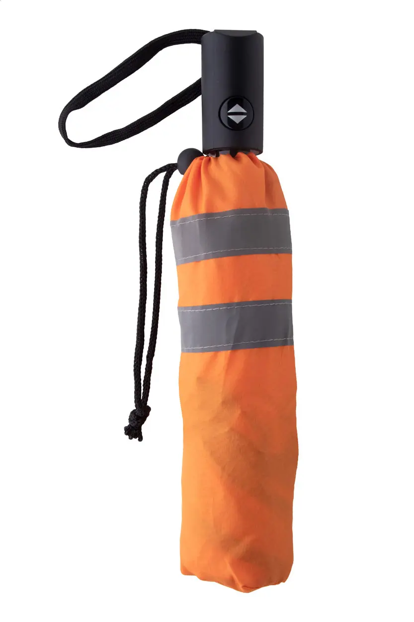 €16.66Potpuno automatski (otvaranje/zatvaranje), vjetrootporni sklopivi kišobran s 8 panela i reflektirajućim rubom. S metalnom drškom, aluminijskim okvirom, rebrima od stakloplastike i plastičnom ručkom. U odgovarajućoj boji torbice s reflektirajućim prugama. 190T pongee. Samo za promotivnu upotrebu, proizvod ne kvalificira kao osobna zaštitna oprema.