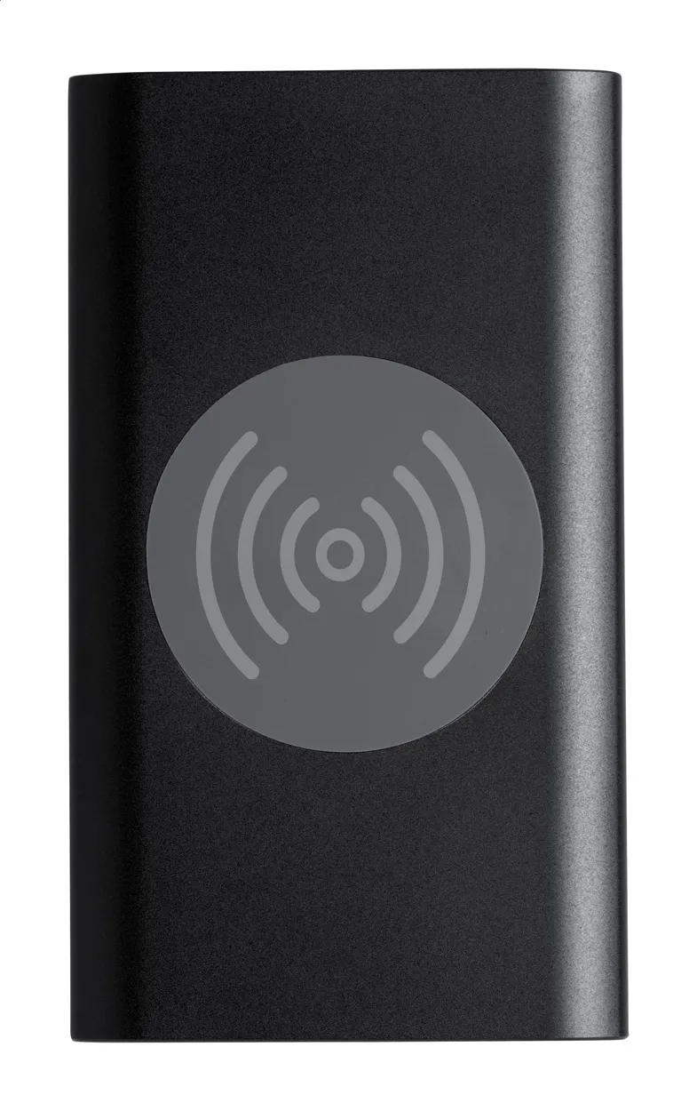 Aluminijski USB power bank s baterijom od 4000 mAh i ugrađenim bežičnim punjačem. Uključuje kabel za punjenje micro USB.