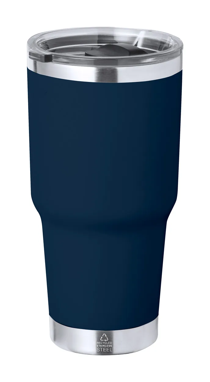 Dvostruka termo šalica od recikliranog nehrđajućeg čelika s plastičnim poklopcem za piće, 600 ml.