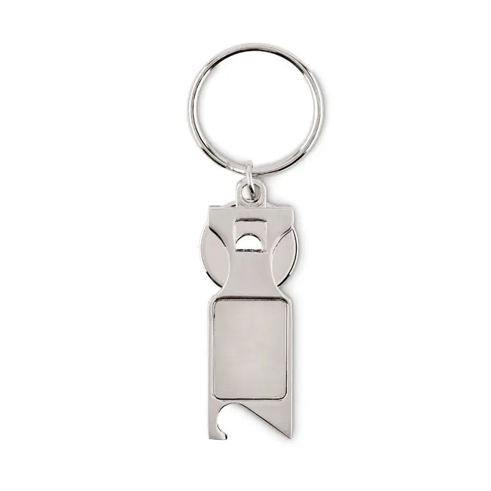 Privjesak za ključeve od legure cinka s euro žetonom za kolica i otvaračem za boce