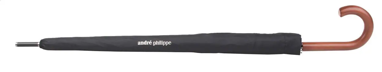 €17.39Automatski vjetrootporni kišobran s crno-sivim prugama, 8 panela, drvena drška, metalna osovina i rebra od stakloplastike 190T pongee u brendiranoj torbici André Philippe