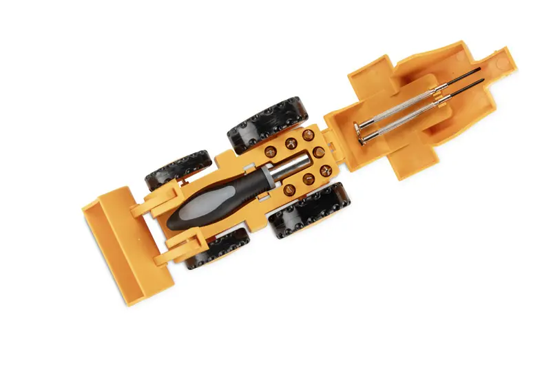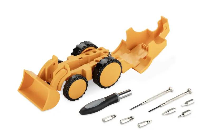 €13.73The DREX tool set is a practical gadget hidden in the unusual form of an excavator. When the case is opened, the interior conceals a set of bits, a classic screwdriver and two precision screwdrivers, useful for small repairs. The compact design means that all components are well organised and always at hand. Functionality combined with an original design makes the DREX an interesting promotional gift, especially for the construction and technical industry. Thanks to the possibility of logo labelling, it also becomes a practical advertising medium.